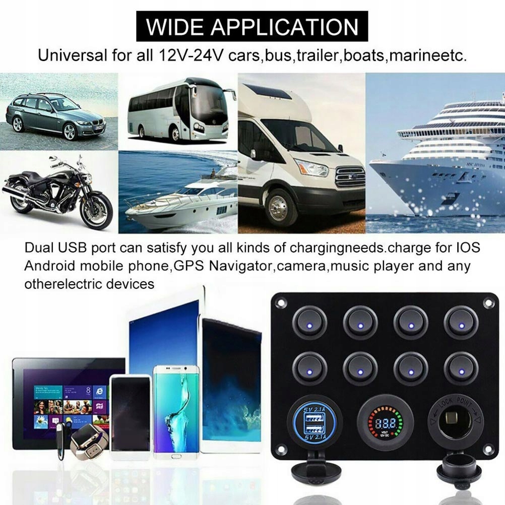 підходить для легко встановити в обох 12V і 24V Автомобіль, яхта, корабель, причіп, вантажівка, і т.д.