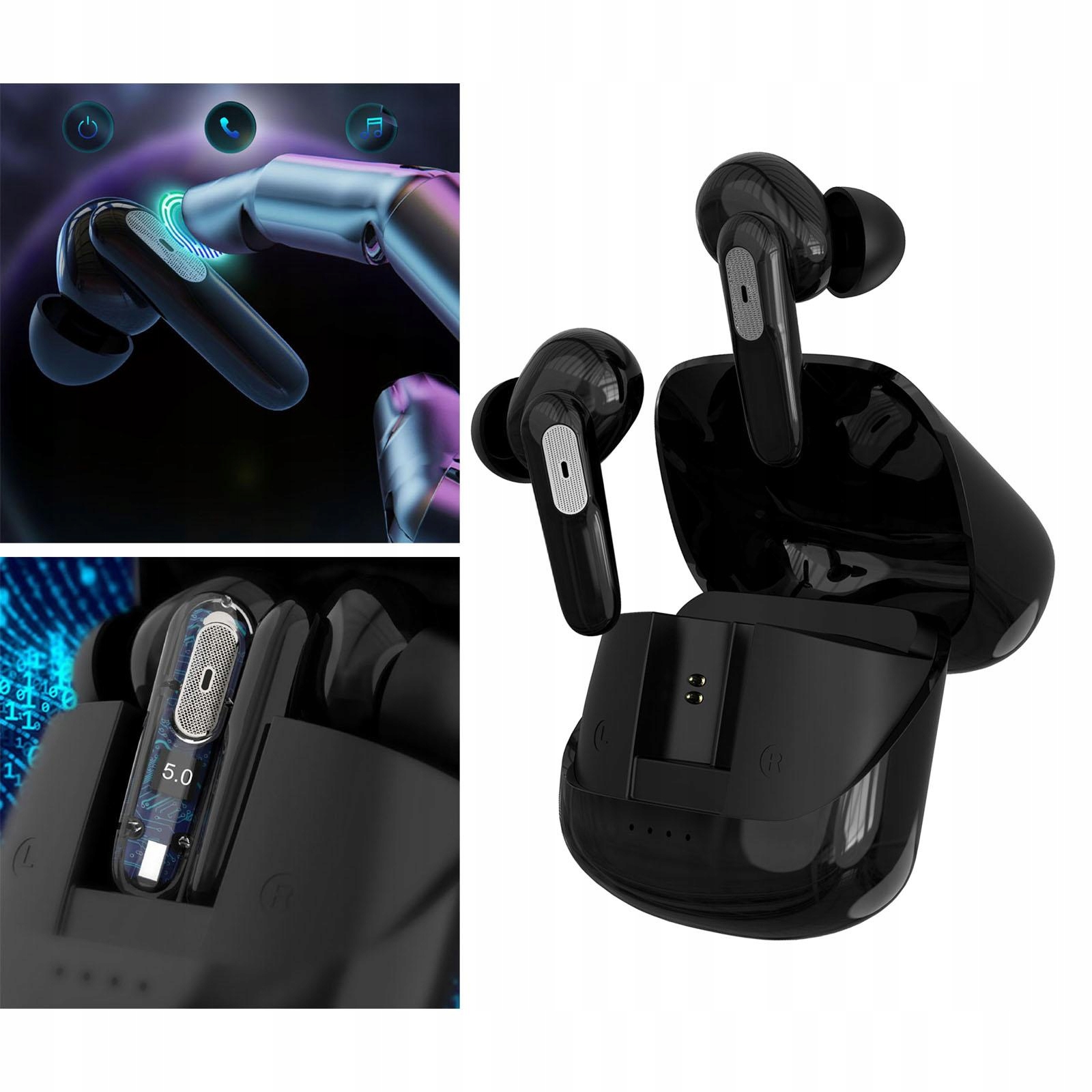 Bluetooth навушники-вкладиші для True Wireless Small вбудований мікрофон для зовнішнього використання, чорний