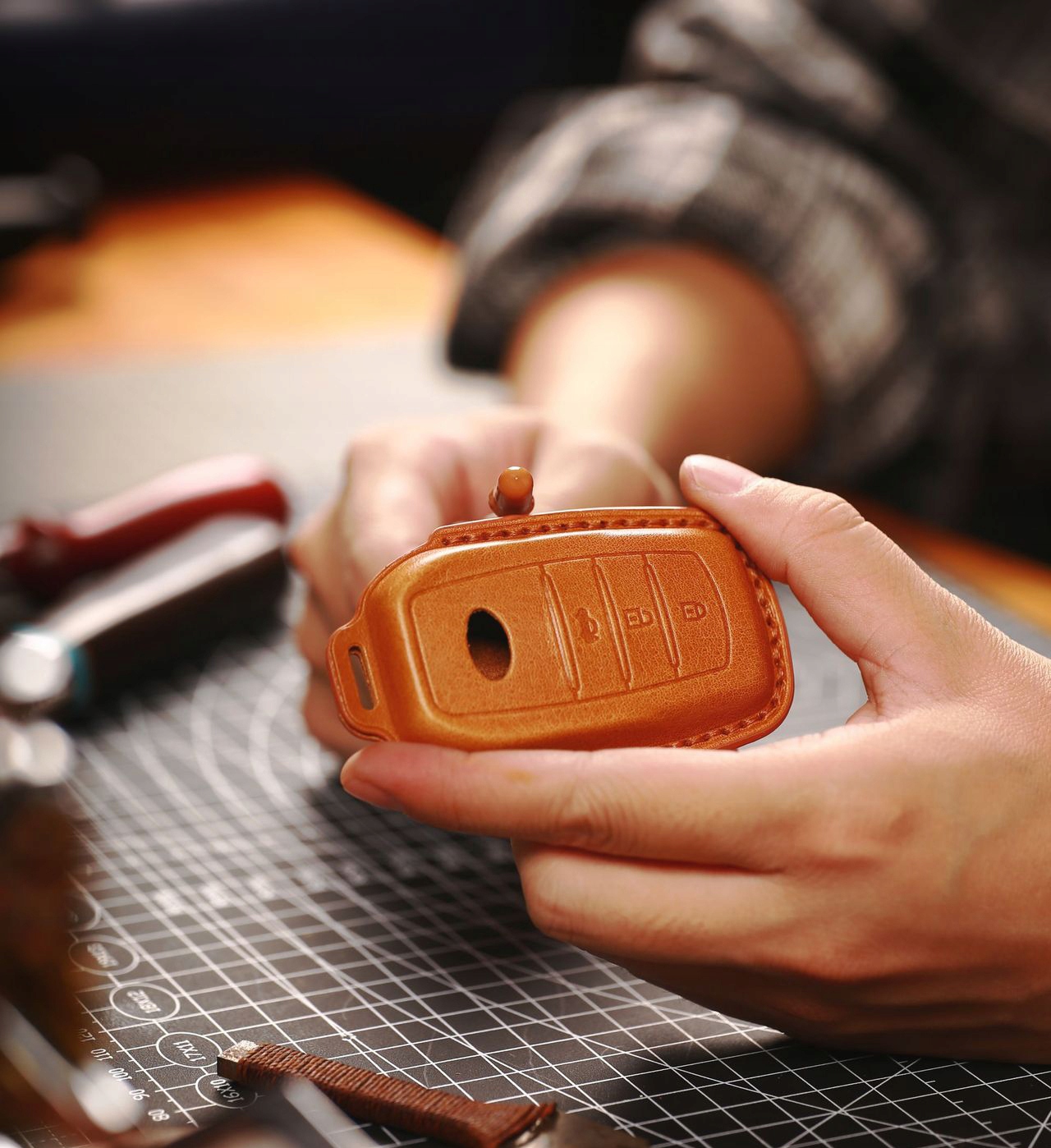 ця історична здатність ремісничого футляра для ключів, використовуючи найкращі шкіри та нитки і, перш за все, чарівний дотик рук наших майстрів, робить наш шкіряний чохол для ключів ручної роботи справжньою розкішшю в епоху, коли розкіш часто визначається лише логотипом або тег.