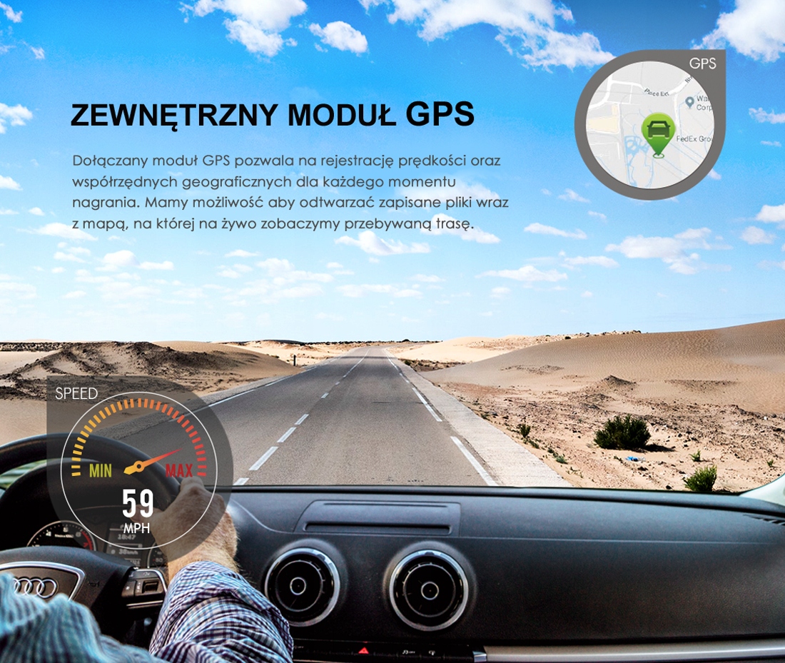 - монтажний кронштейн з GPS - модулем, приклеєний клейкою стрічкою до скла (можливість живлення камери через кронштейн),