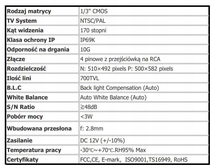камера являє собою єдине ціле з усім корпусом, що безумовно впливає на її міцність і надійність. (Це не набір універсальної камери + підставка, як пропонують інші продавці на Allegro)