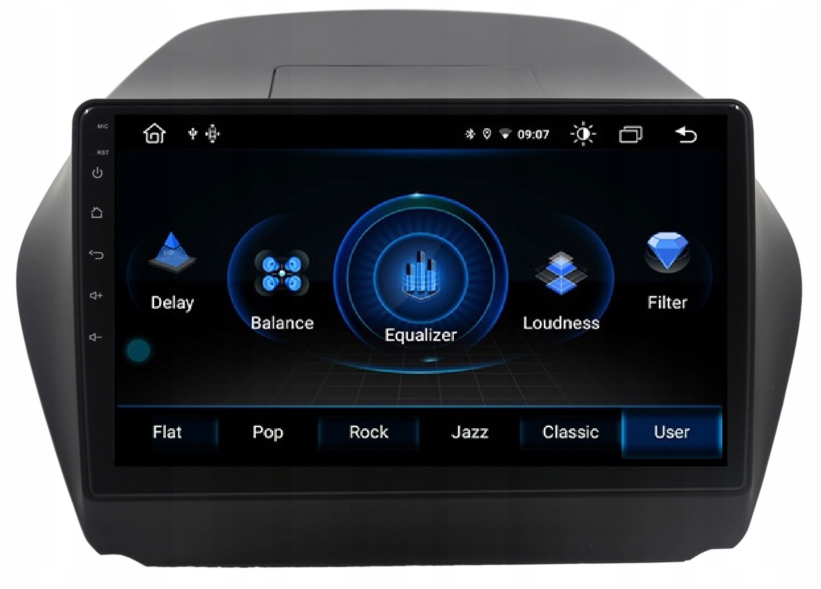 цифровий звуковий процесор і графічний еквалайзер(EQ ) забезпечують високоякісний звук, який задовольнить навіть найвимогливіших любителів музики! Вбудовано кілька режимів, визначених еквалайзером (рок, поп, джаз і т.д.), а також була залишена можливість будь-якої корекції Користувачем. Він має функціюLOUDNESS. Радіо також має опцію FADER, яку ми можемо змінити співвідношення звуку між окремими динаміками.