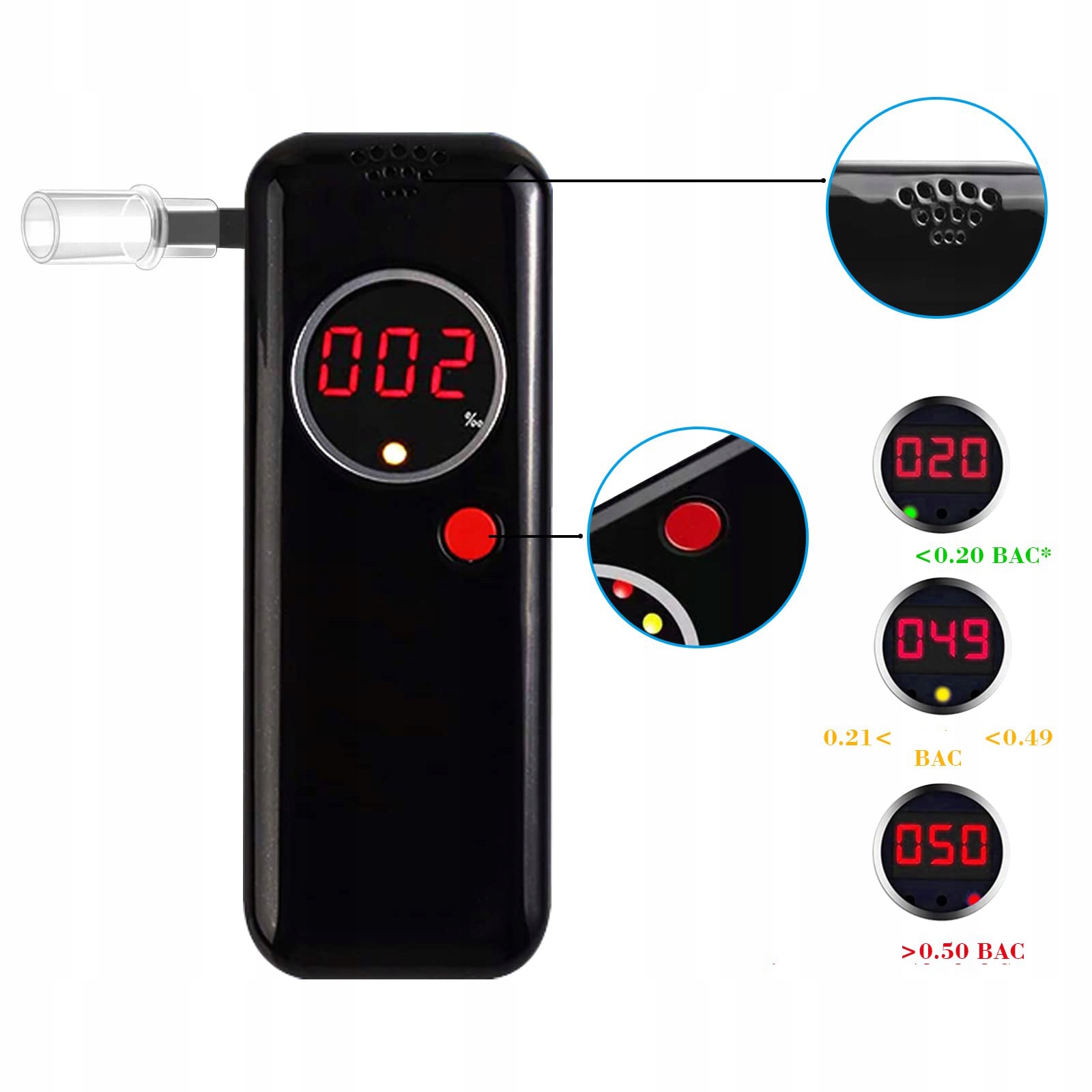 ПРОФЕСІЙНИЙ ПОРТАТИВНИЙ АЛКОТЕСТЕР СВІТЛОДІОДНИЙ ДИСПЛЕЙ