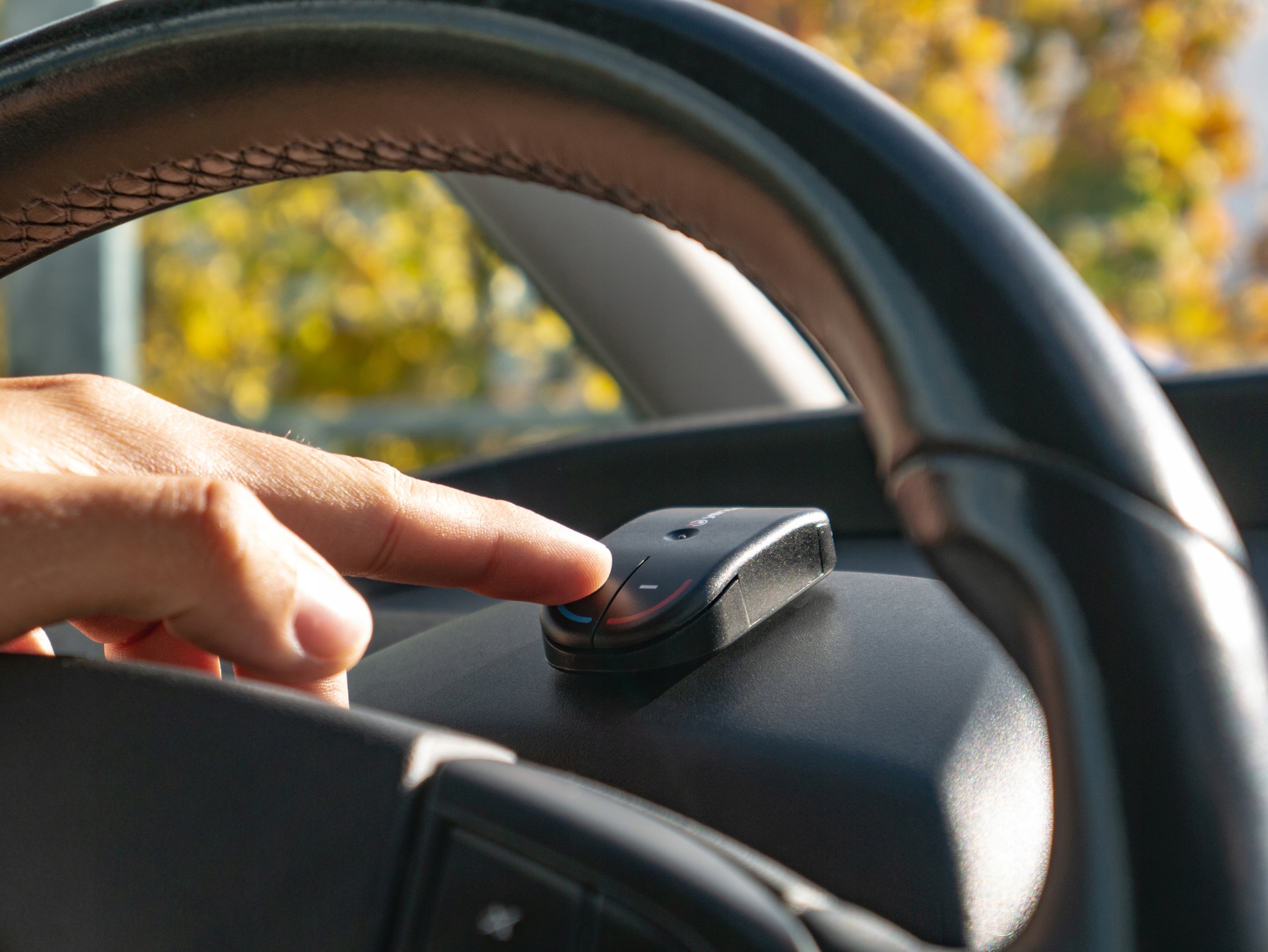 Yanosik Alert працює через з'єднання Bluetooth з додатком Yanosik. Просто сідайте в машину, увімкніть додаток Yanosik, і пристрій запуститься автоматично. Тепер досить просто запустити двигун!е>