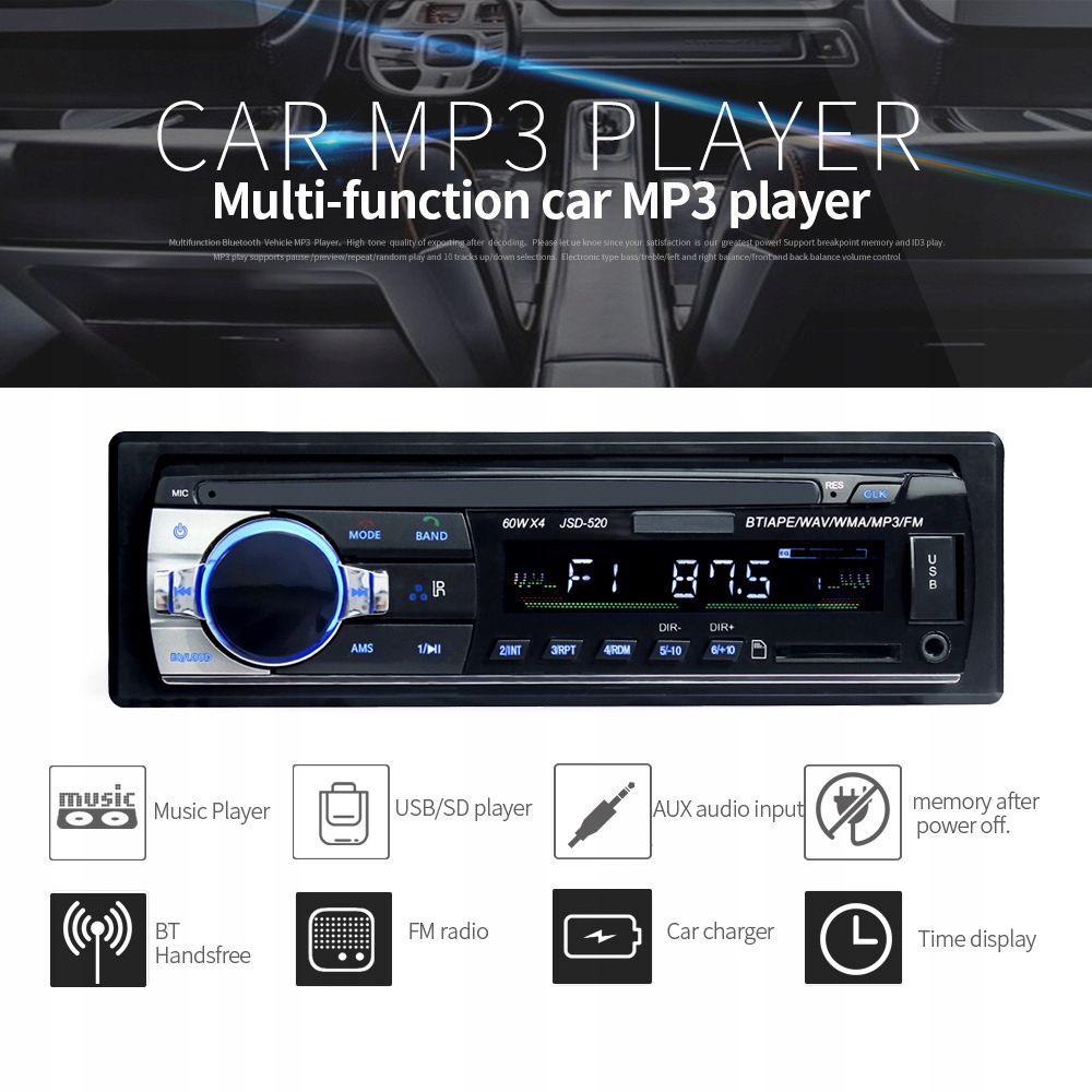 джерело живлення:: вбудований MP3-плеєр в автомобілі