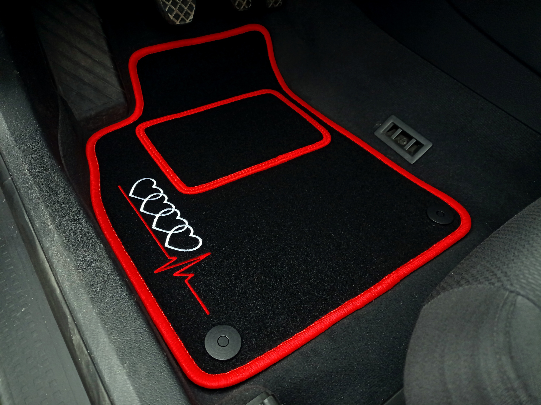 нижче представлені Велюрові килимки у версії "стандарт" з унікальною вишивкою вагою 1750 г / м2 товщиною близько 0,5 см, оброблені міцною і міцною пряжею. Килимки розроблені і виготовлені ретельно компанією LASOTA, щоб відповідати формі підлоги Вашого автомобіля. Дно килимків покрито шаром шорсткою гуми, що запобігає промокання і ковзання. На килимок водія пришита арматура, що запобігає більш швидке тертя килима.е>