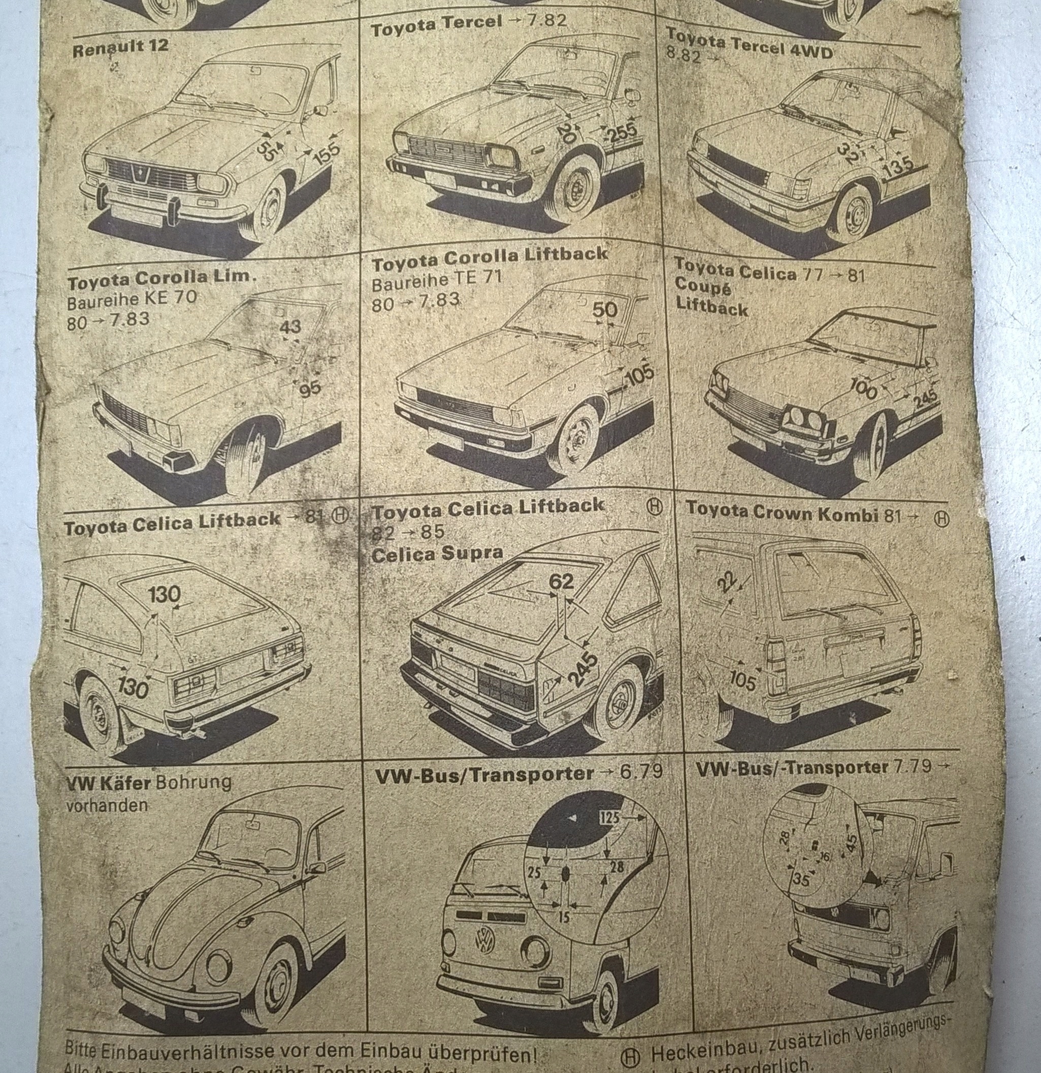 TOYOTA TERCEL до 82 / TERCEL 4x4 від 82 / COROLLA 80-83 E70 E71 / CELICA від 77-> / CELICA SUPRA 82-85 / CROWN універсал від 81 /