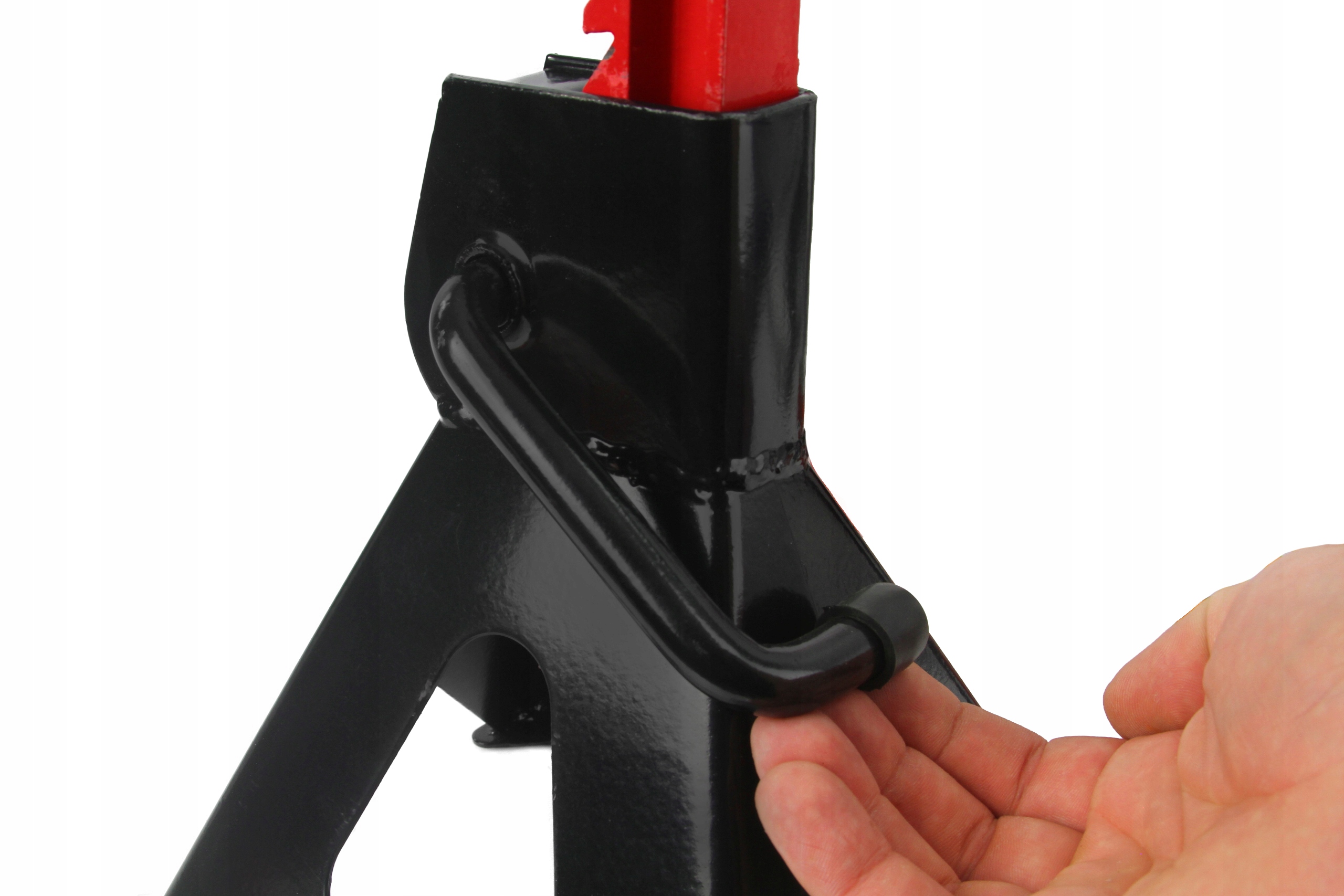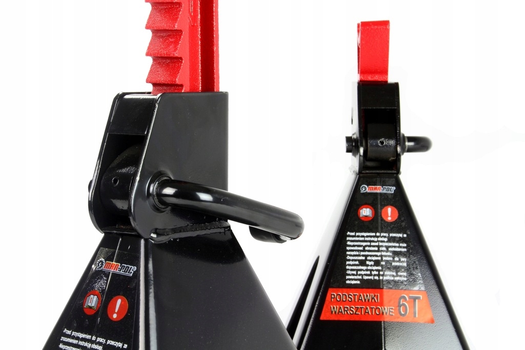 підставки забезпечують надійну і стабільну підтримку автомобіля на спеціально профільованих сідлах. Фіксуючий важіль ефективно фіксує стійки опор в обраному положенні. Вони виготовлені з міцної сталі і мають міцну зварену конструкцію. Ніжки підставки мають зварні широкі ніжки, стабілізуючі кобили під час роботи під навантаженням.