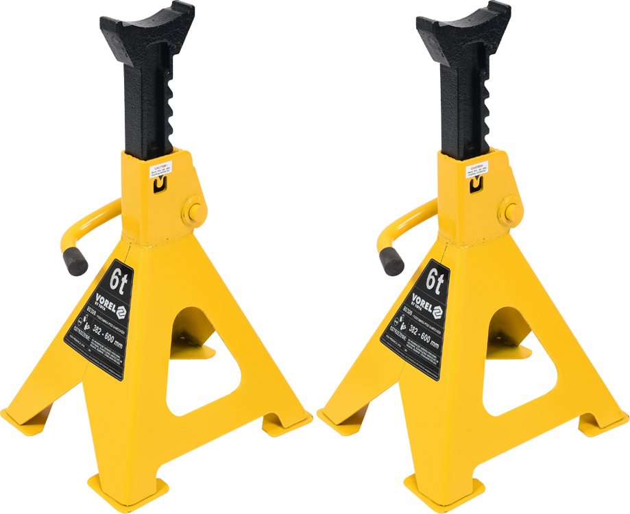 підставки під автомобіль мають чотири лапи, регулювання висоти в діапазоні 382-600 мм, вантажопідйомність 6 тонн. Кобили покриті антикорозійним шаром. Відмінно підходить для зняття навантаження на домкрат. Вони відносяться до основного обладнання будь-якої майстерні.