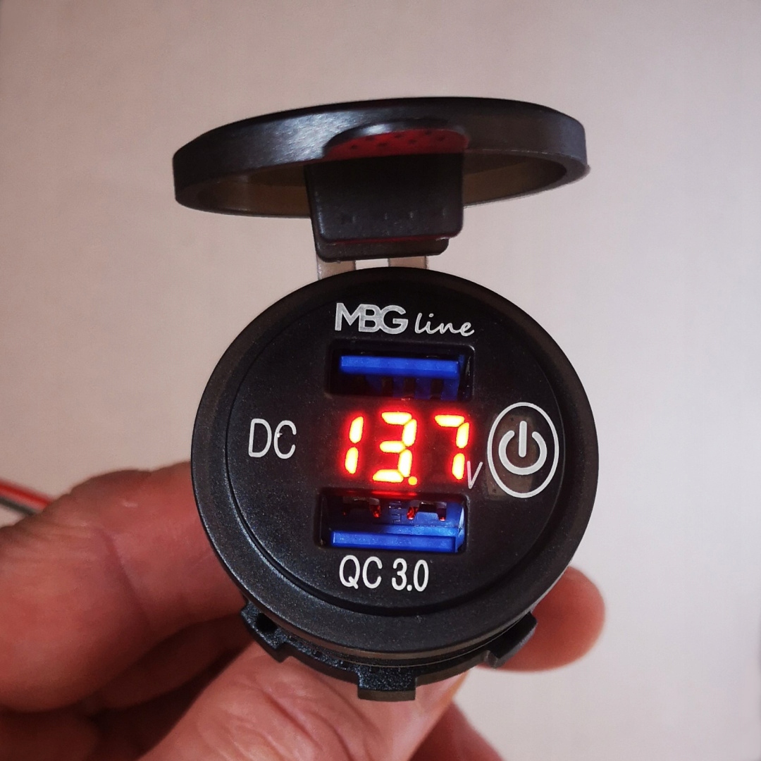 ✅вхід: ✅вихід:2x 5V/3A,9V/2.5 A,12V/2A ✅колір:Чорний ✅вбудований вольтметр:так ✅водонепроникність:так IP66 (з гумовою заглушкою) ✅Довжина шнура живлення:140 см ✅зарядний пристрій 2x USB QC3.0 + гвинтова кришка + гумова заглушка ✅шнур живлення довжиною 140 см ✅2x додатковий роз'єм в комплекті: