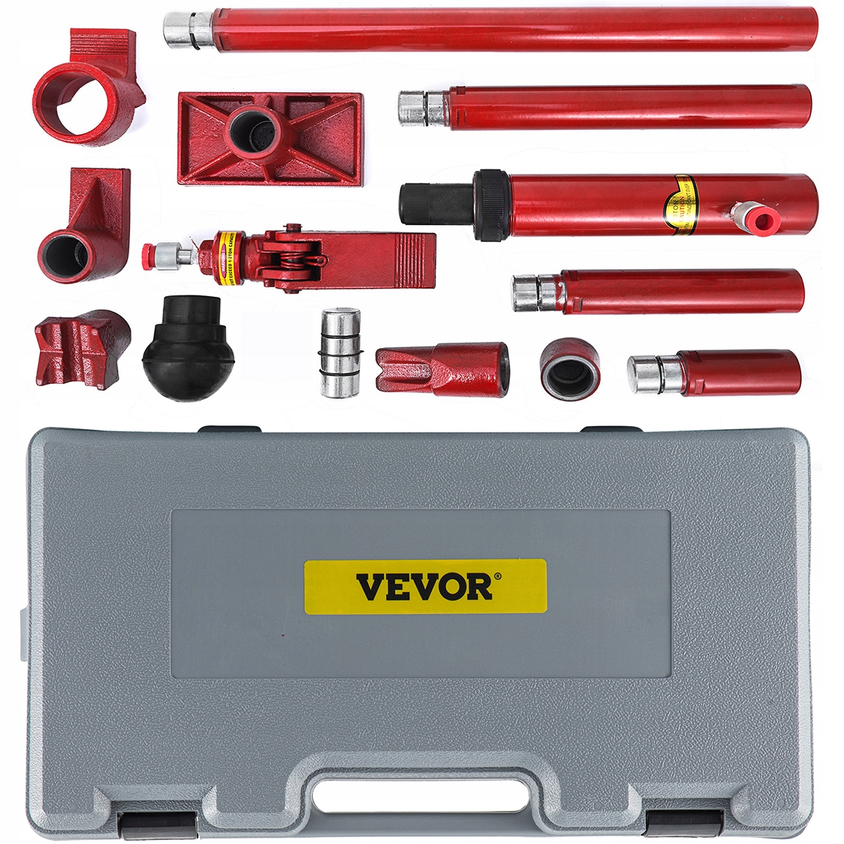 це надпотужний гідравлічний домкрат, що містить 15 компонентів для ремонту кузова автомобіля. Побудований із сталі та чавуну, він приймає 10-тонний таран, цей набір може виконувати велику роботу під час підйому, штовхання, витягування, згинання, випрямлення та розкладання завдань. Портативний для перевезення в автомобілі або розміщення в гаражі для використання в будь-який час. Це хороша допомога для вас.е> <вулик>
