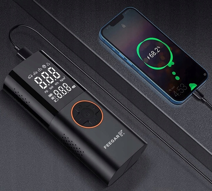 Розроблений у Польщі фахівцями Feegar, він пропонує низку інноваційних рішень, таких як подвійний режим живлення, акумулятор живлення, швидке надування за 1 хвилину, точний подвійний світлодіодний дисплей і 5 режимів накачування.