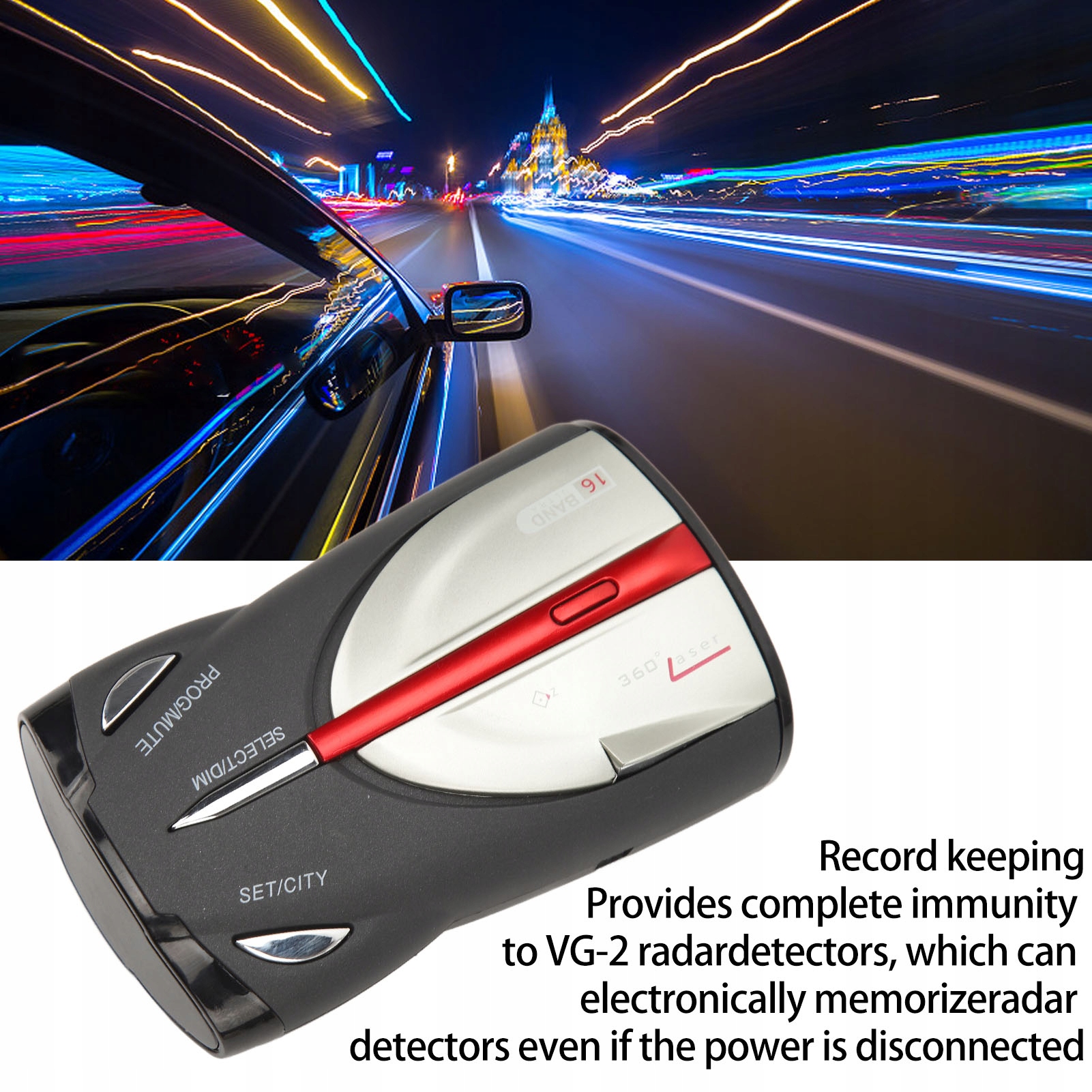5. Зберігання даних: забезпечує повний опір детекторам радарів VG-2 і в електронному вигляді запам'ятовує Налаштування детектора радара на невизначений термін, навіть після відключення живлення.