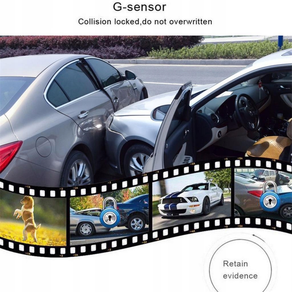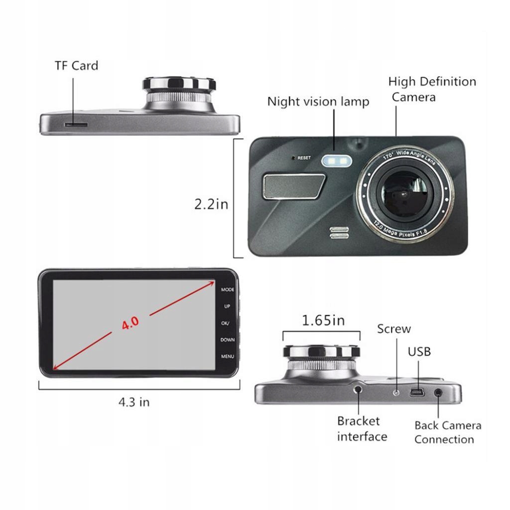 Реєстратор водіння автомобіля, 4,0-дюймовий сенсорний екран, відеореєстратор, подвійна лінза, 1080P, нічне бачення