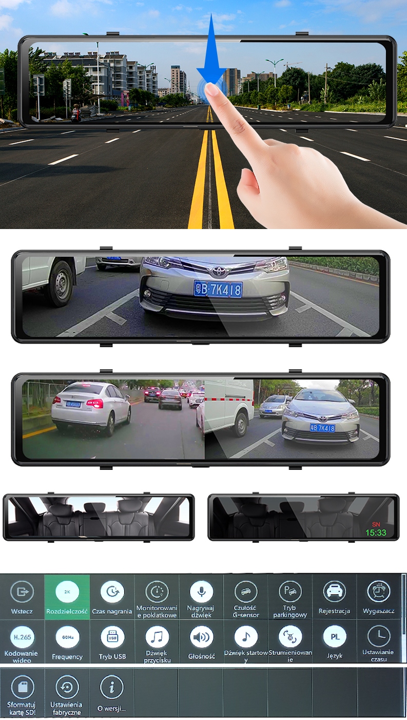 11. Ширококутні об'єктиви камер 170°і 140° значно розширюють поле зору водія і дозволяють відобразити кожну дорожню подію з більш широкої точки зору. Це дозволяє записувати деталі навіть за межами області зору водія.