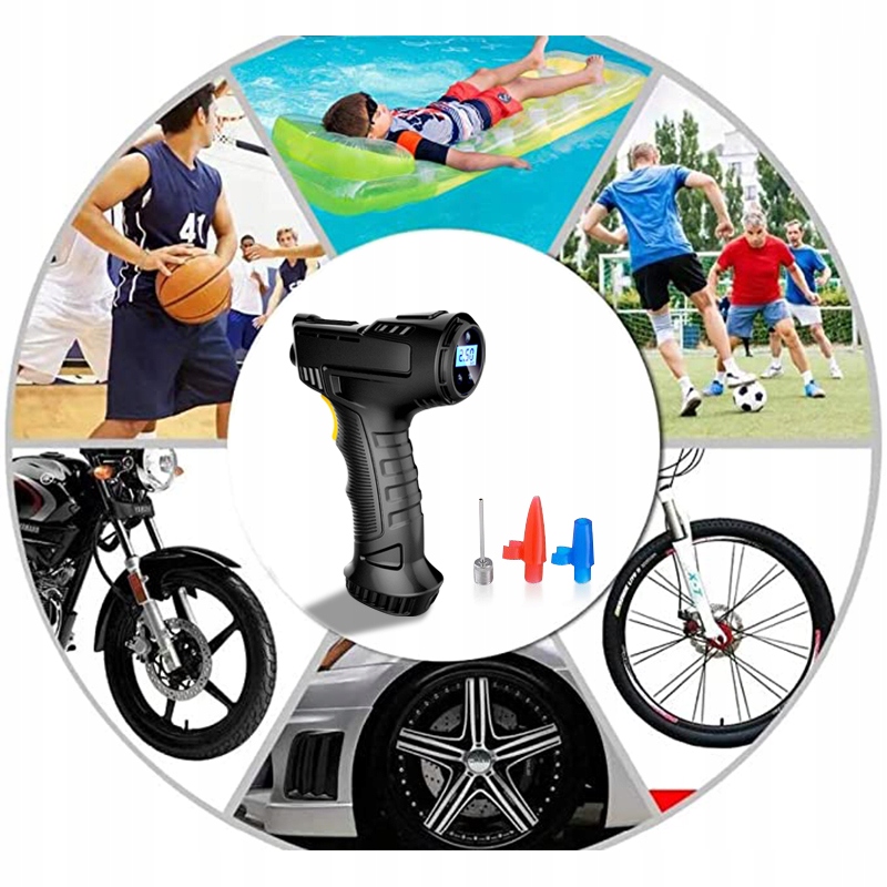 функція: надувати автомобільні шини, велосипеди, кемпери і т.д.
