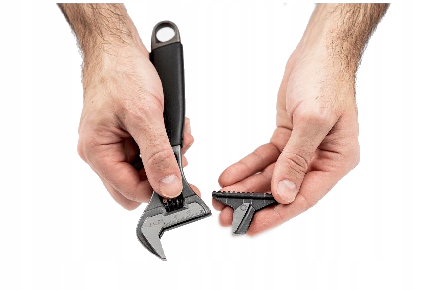 - шляхом зняття і повороту реверсивної щелепи регульований ключ може бути перетворений в трубний ключ