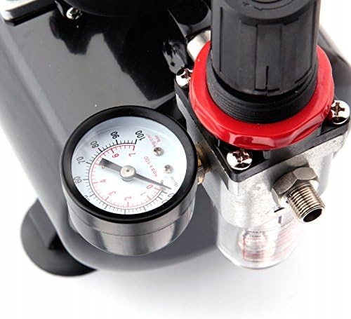 ефективне і постійне робочий тиск, сильний повітряний потік, високоякісний безмасляний поршневий компресор, встановлений з баком 3 л, манометром, регулятором стисненого повітря, повітряним фільтром