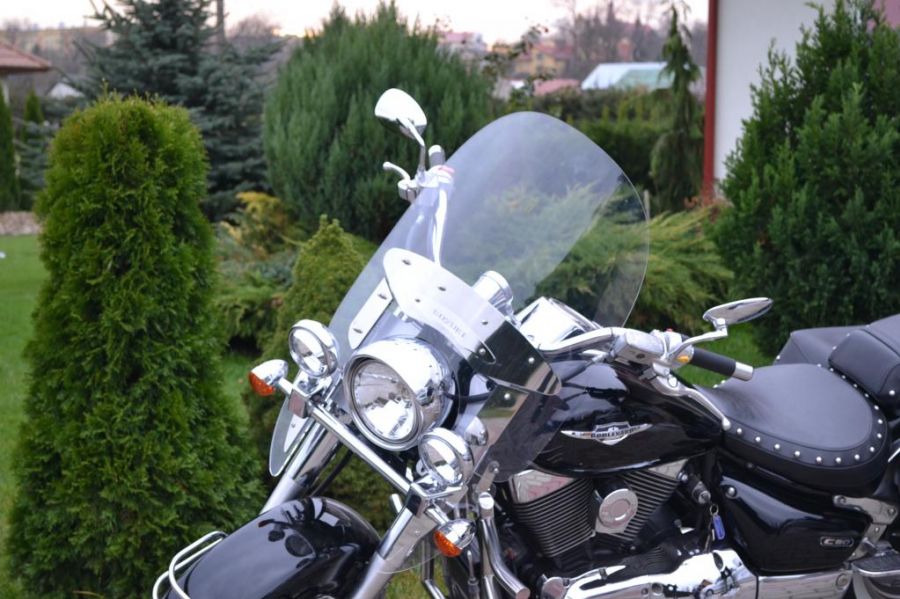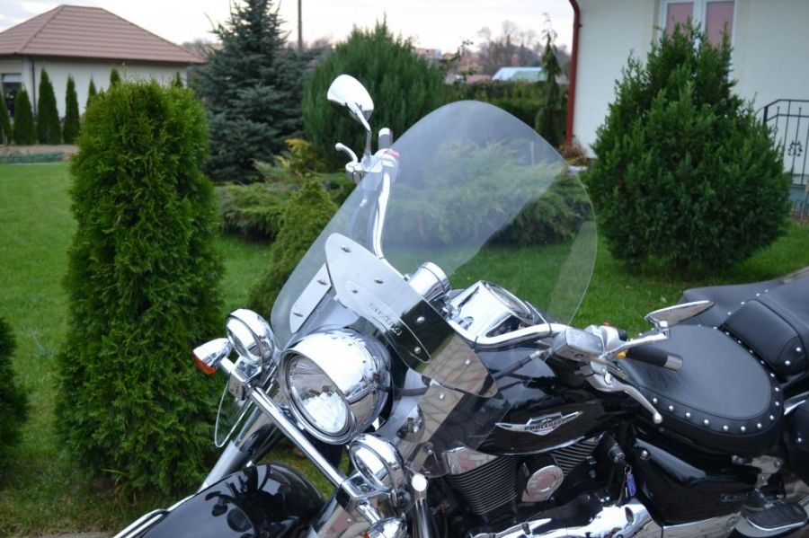 до скла додається хромована емблема з лазерним різанням написом Yamaha або Honda або Kawasaki або Suzuki в залежності від моделі мотоцикла, для якої призначене скло