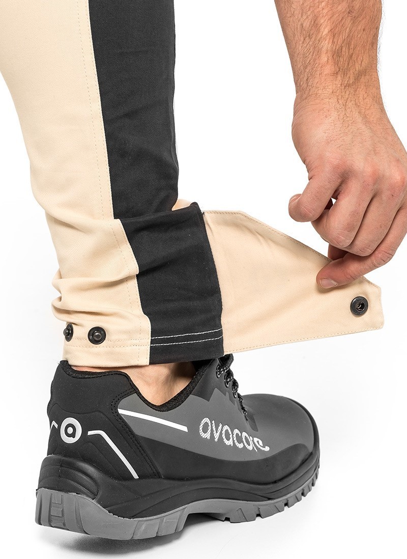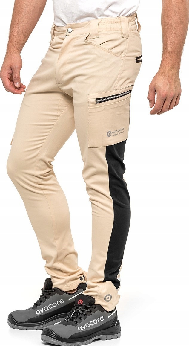інноваційні робочі штани Slim Fit, виготовлені з еластичної, дихаючої і динамічної тканини, створеної в результаті поєднання високого вмісту бавовни і спандекса. Сильний, приємний на дотик з масою 260-275 г / м2. Вони гарантують відмінний комфорт і свободу пересування навіть в спекотні літні дні. Можливість регулювання ширини нижньої частини штанини, завдяки використанню язичка, що застібається на кнопки. Надзвичайно міцний завдяки подвійній строчці, виготовлений з м'якого саржевого переплетення.