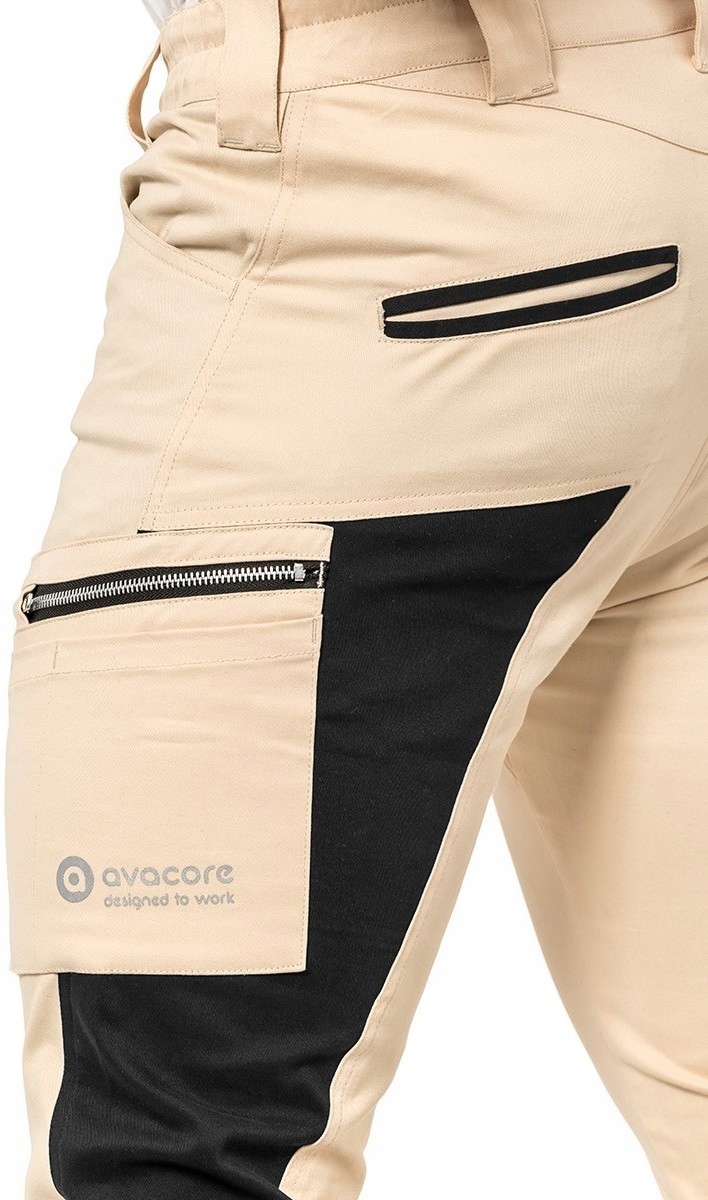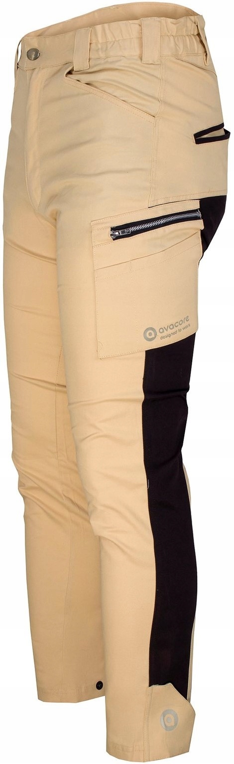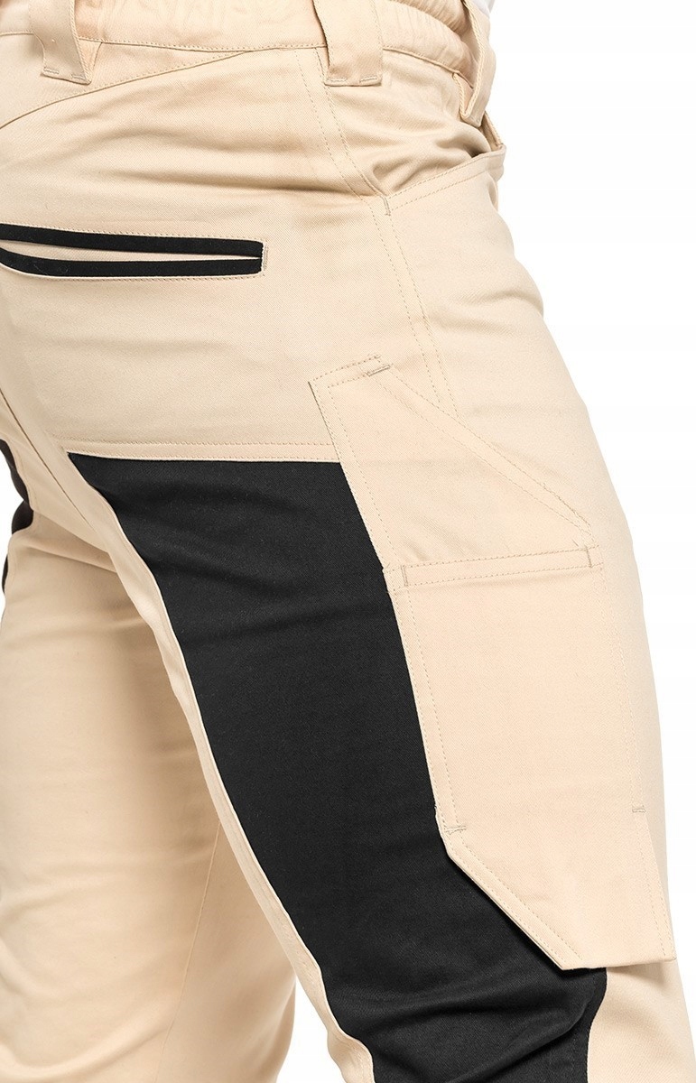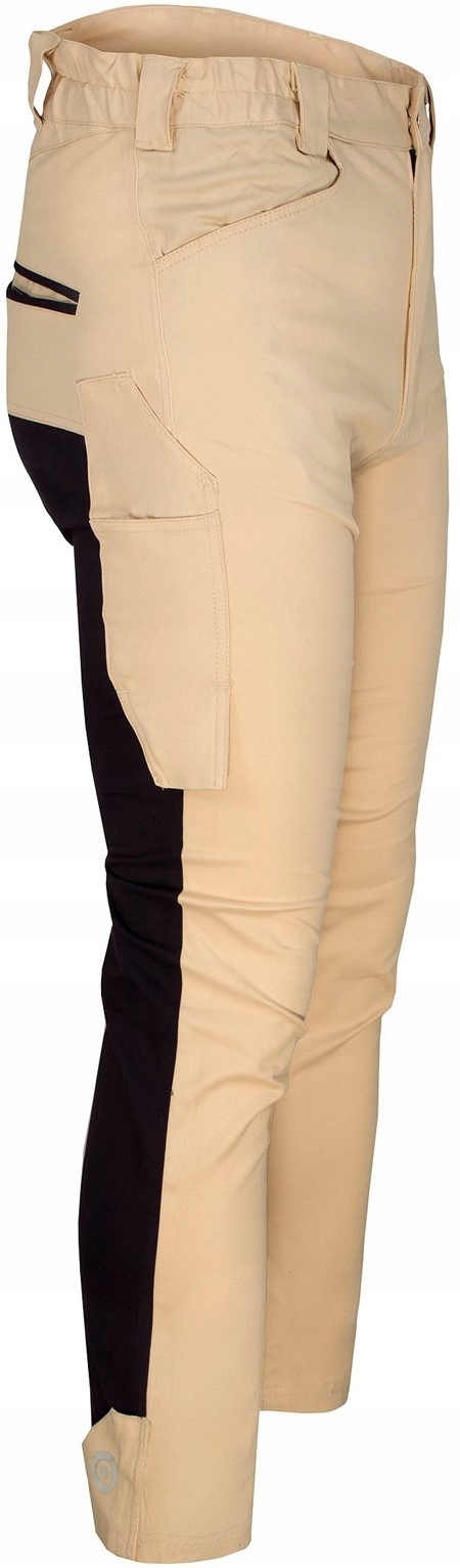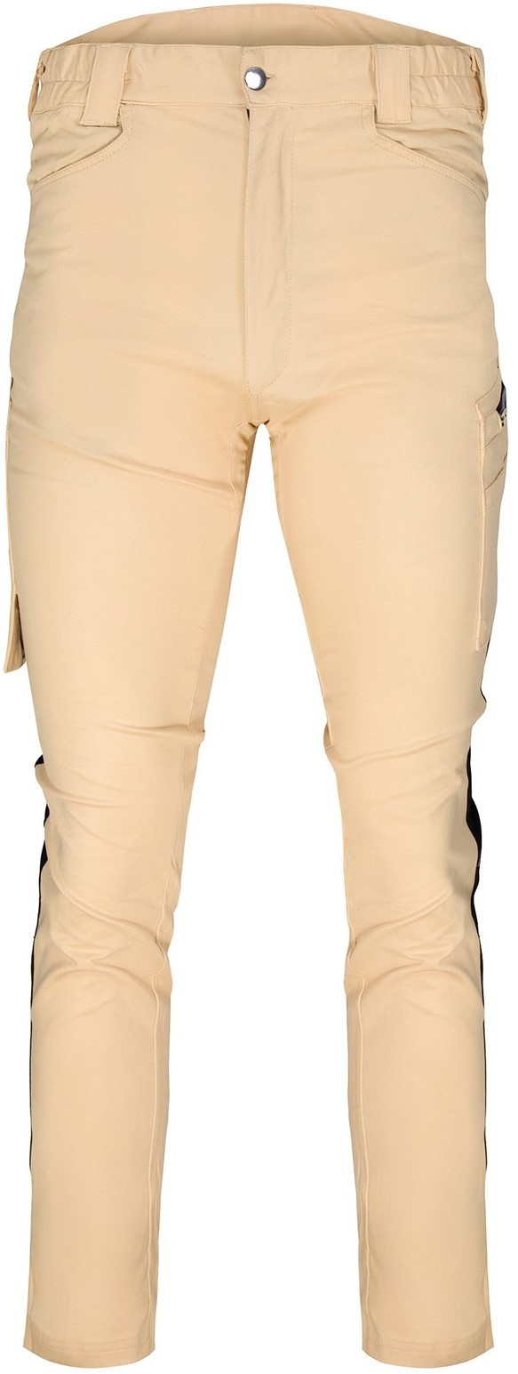 інноваційні робочі штани Slim Fit, виготовлені з еластичної, дихаючої і динамічної тканини, створеної в результаті поєднання високого вмісту бавовни і спандекса. Сильний, приємний на дотик з масою 260-275 г / м2. Вони гарантують відмінний комфорт і свободу пересування навіть в спекотні літні дні. Можливість регулювання ширини нижньої частини штанини, завдяки використанню язичка, що застібається на кнопки. Надзвичайно міцний завдяки подвійній строчці, виготовлений з м'якого саржевого переплетення.