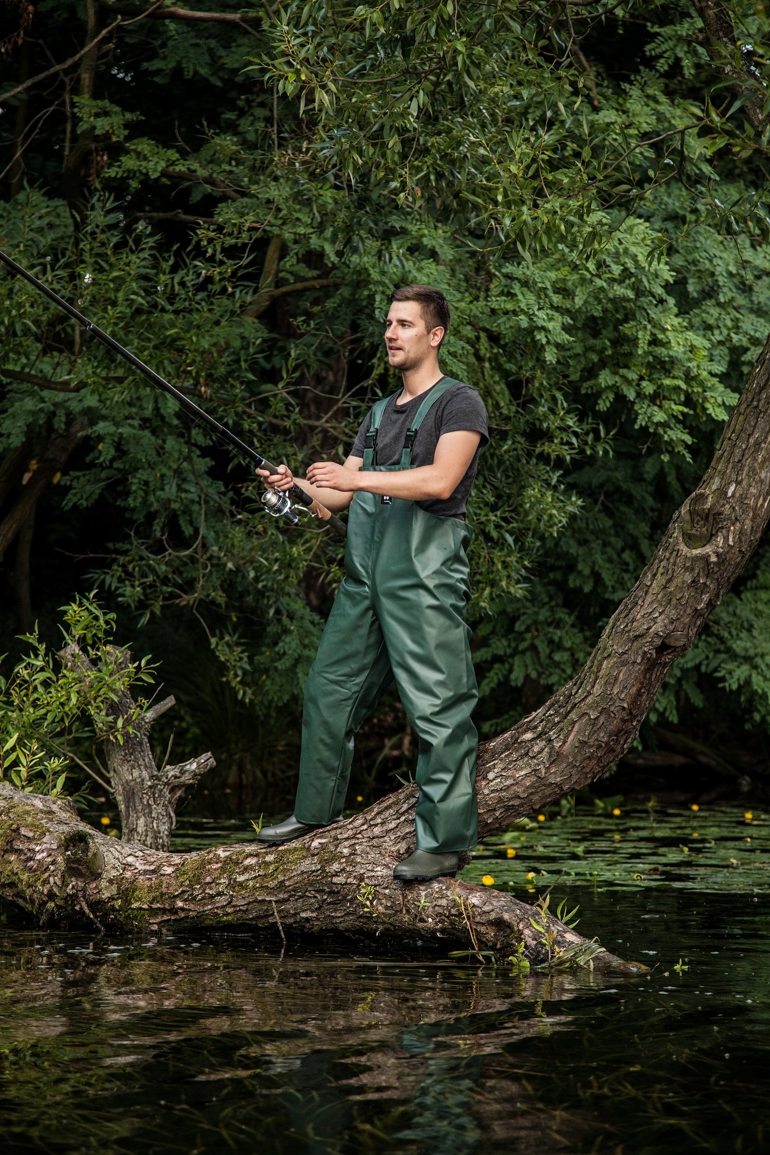 Штани модель 001 є повністю водонепроникним продуктом. Вони підходять для різних робіт на воді і в поганих погодних умовах, а також для риболовлі та полювання. Виріб досить легке, не утрудняє рухів. Цей продукт має регульовані підтяжки. Рекомендується для всіх мокрих робіт.е>