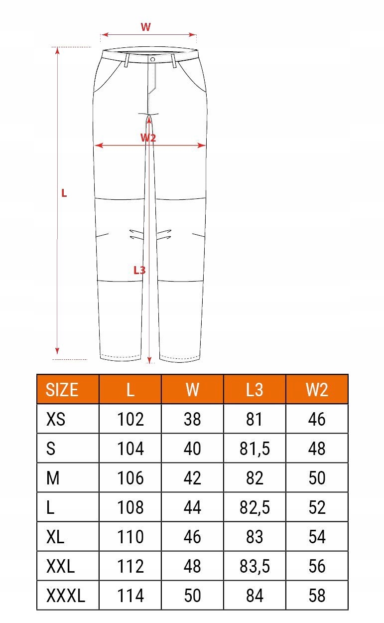оснащений п'ятьма багатофункціональними і місткими кишенями і додатковою кишенею в нижній частині штанини.е>