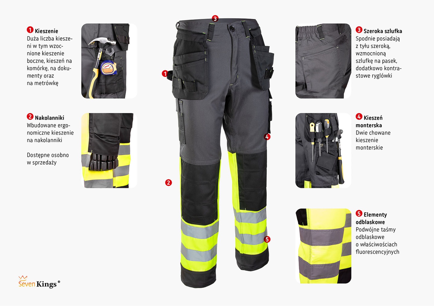 робочі світловідбиваючі штани марки Seven KINGS модель FLASH