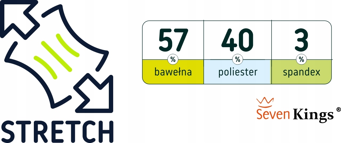 спеціально підібрана тканина-Суміш бавовни (57%), поліестеру (40%) і спандекса (3%) вагою 300 г/м2 забезпечує комфорт і міцність, а також стабільність кольорів і розмірів після багаторазового прання