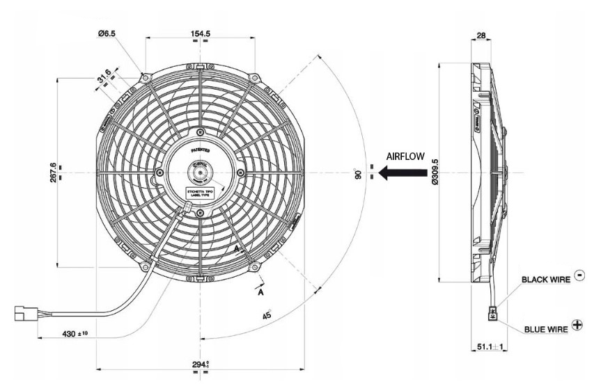 • діаметр з корпусом: 309,5 мм