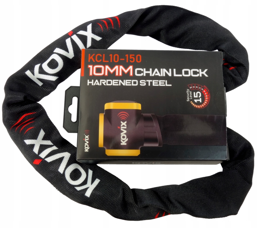 перевагою захисного ланцюга є її універсальність. Його можна використовувати як для блокування колеса мотоцикла, так і для прив'язки його до навколишнього елементу, а також для захисту воріт гаража, де ви зберігаєте машину. Захисна ланцюг марки KOVIX < /b > виготовлена з високоякісної сталі з шестикутним поперечним перерізом ланок, що робить її надзвичайно міцною і стійкою до порізів або руйнувань. Ланцюги KOVIX оснащені тканинної кришкою для запобігання подряпин на елементах мотоцикла, яка запобігає подряпини на ободах і інших елементах автомобіля.