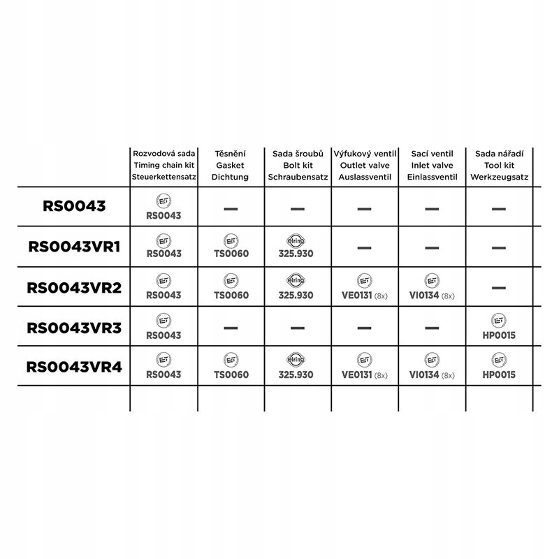 КОМПЛЕКТ ЛАНЦЮГА ГРМ RS0043 ET ENGINETEAM AUDI