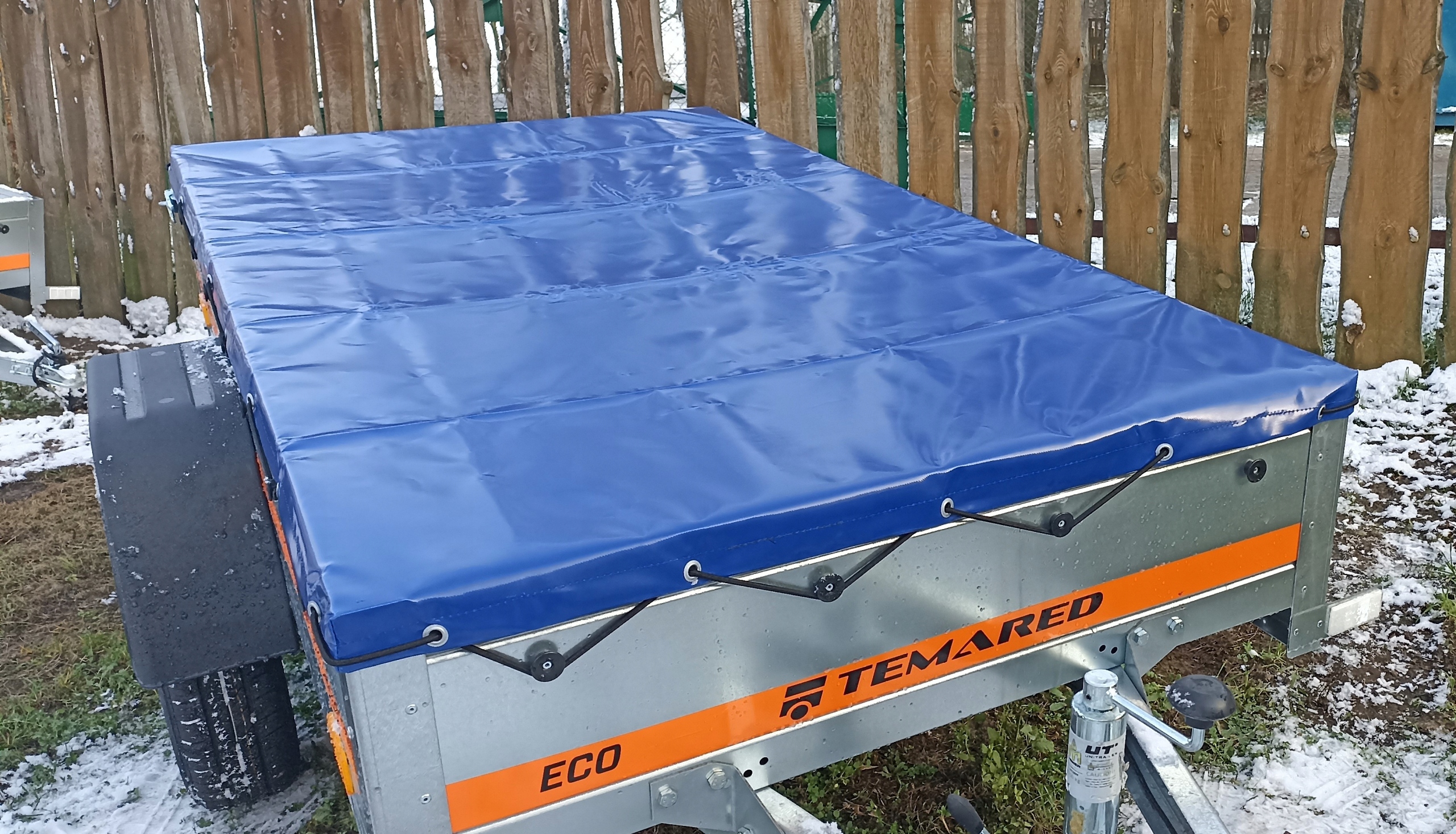 виготовлений з брезенту вагою 650 г / м2. Ідеально підходить, на замовлення. Він оснащений еластичним тросом, щоб добре натягнути брезент на причепі.