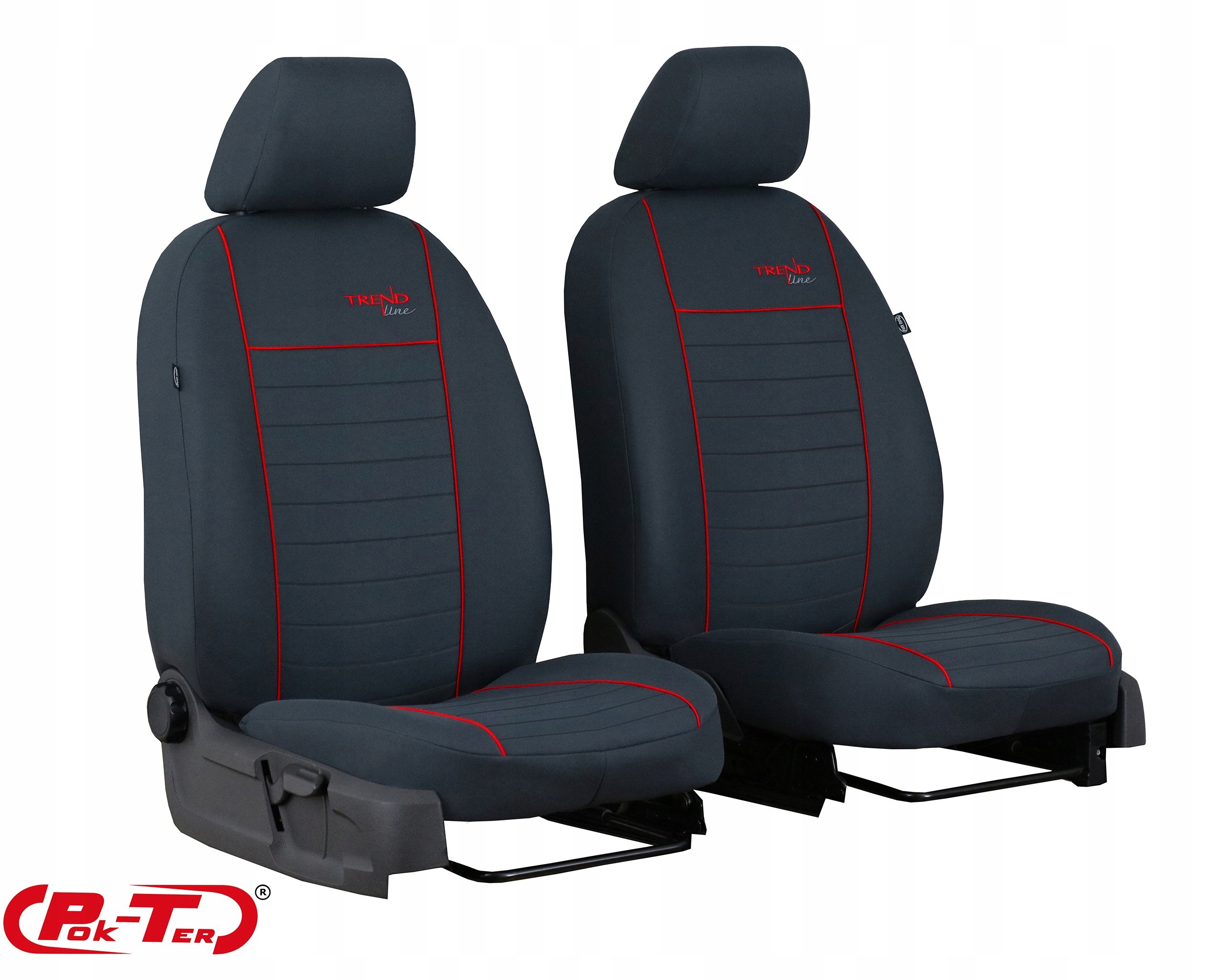 Звичайні чохли TREND LINE виготовлені з оббивної тканини попелястого кольору - новинкою в пропозиції є рельєфна фактура матеріалу, використаного для середньої смуги. Перевагами цього типу тканини, крім естетичних цінностей, є також краща циркуляція повітря, що підвищує комфорт використання. Між стиками матеріалів використовується кант, що значно підвищує довговічність виробу. Крім того, можливість вибору кольору надає чохлам індивідуальний характер.