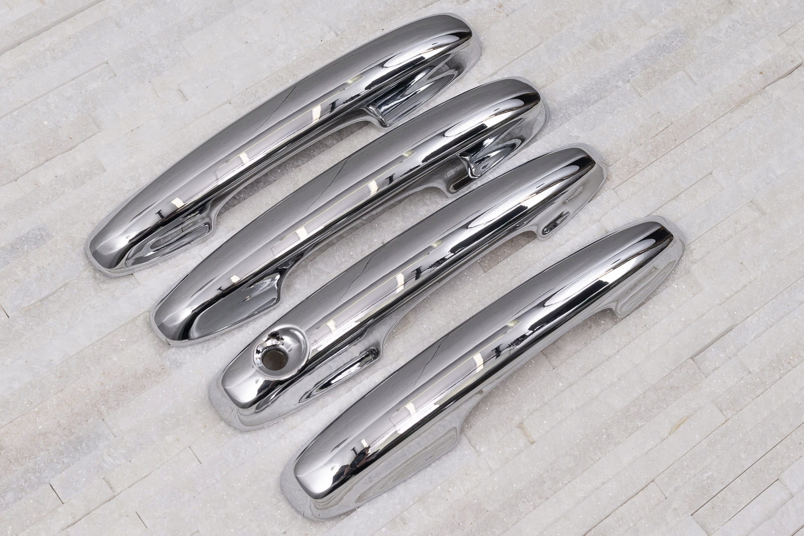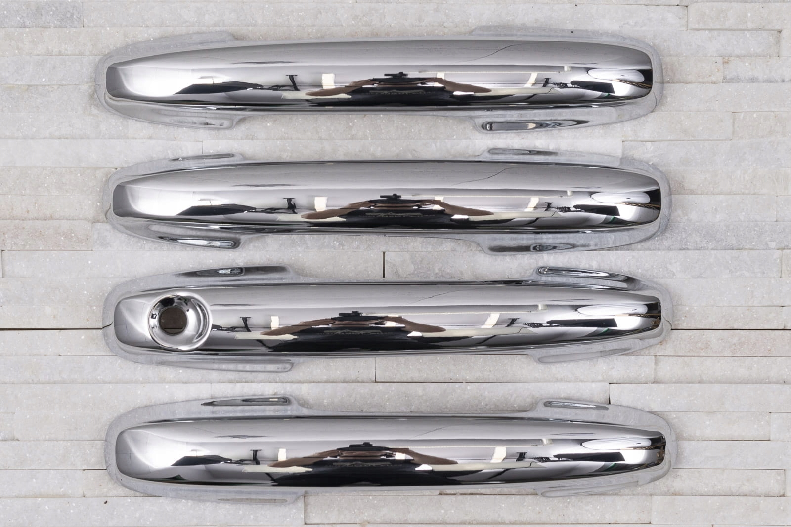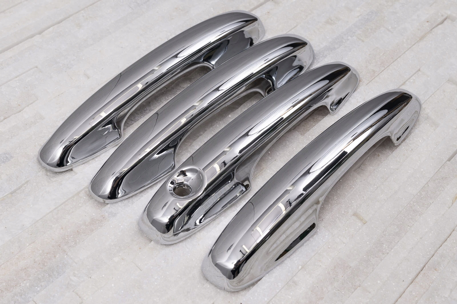 в комплект входить набір з чотирьох накладок на дверні ручки. Вони монтуються за допомогою скотча 3м двосторонньої клейкої стрічки, прикріпленої до внутрішньої сторони елементів. Їх наносять на знежирену поверхню за допомогою екстрактивного бензину або спирту, при позитивних температурах від 18 ° С.рекомендується професійна установка. е>