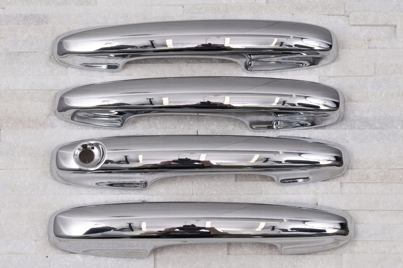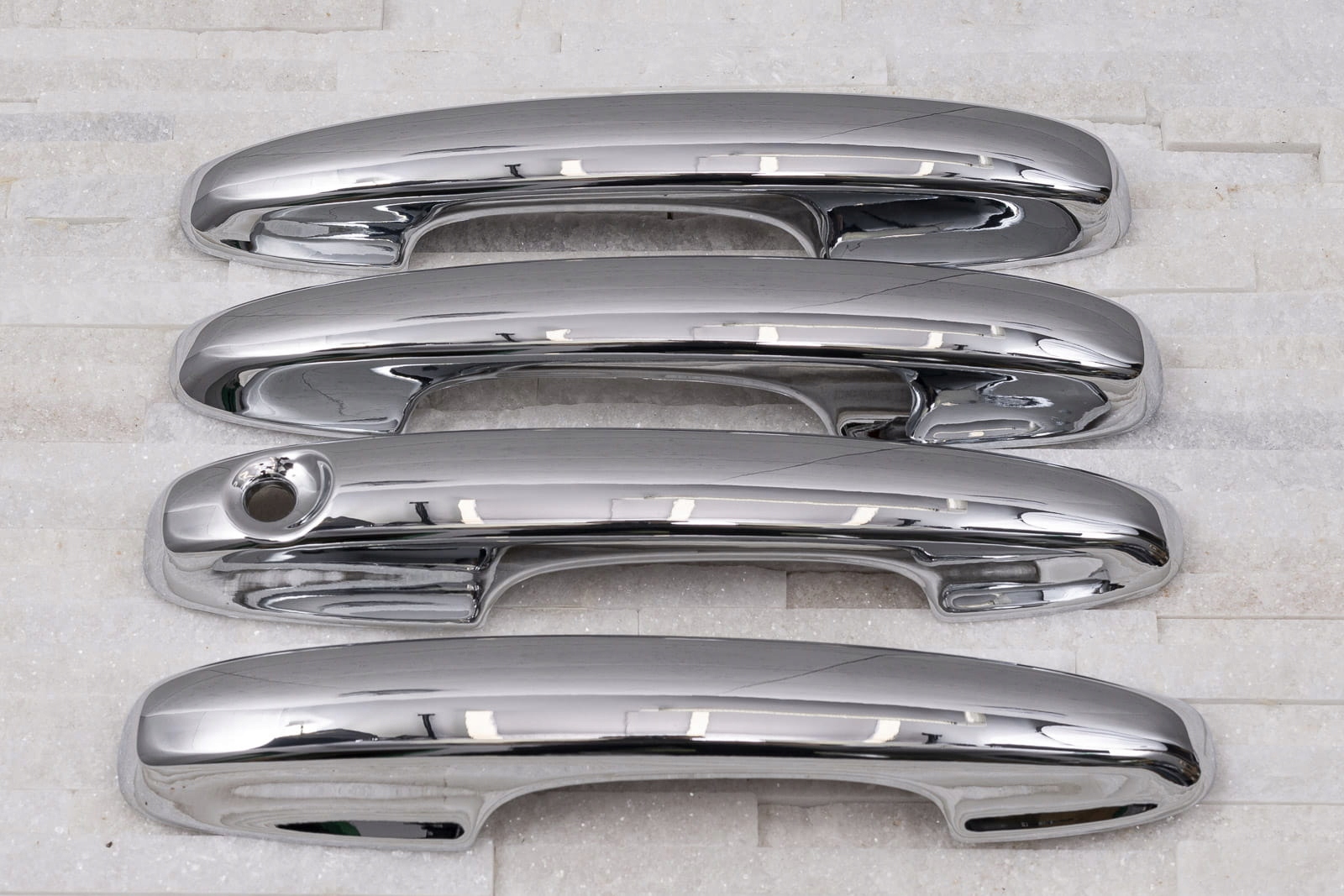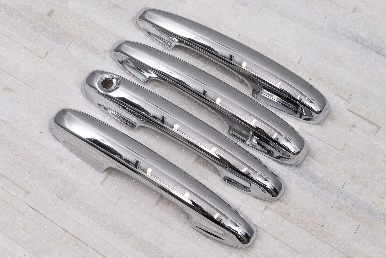 в комплект входить набір з чотирьох накладок на дверні ручки. Вони монтуються за допомогою скотча 3м двосторонньої клейкої стрічки, прикріпленої до внутрішньої сторони елементів. Їх наносять на знежирену поверхню за допомогою екстрактивного бензину або спирту, при позитивних температурах від 18 ° С.рекомендується професійна установка. е>