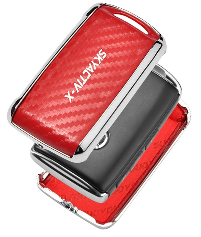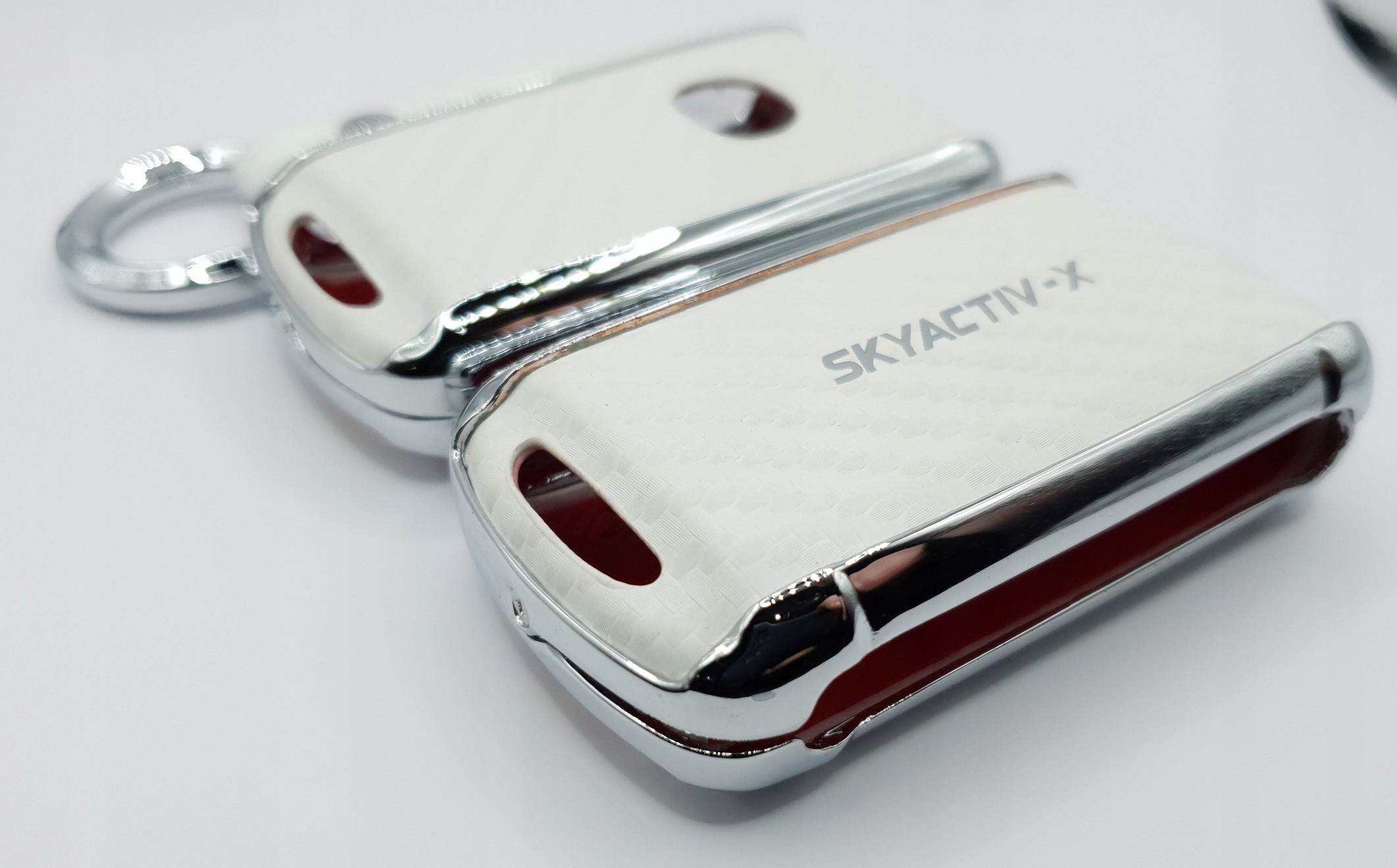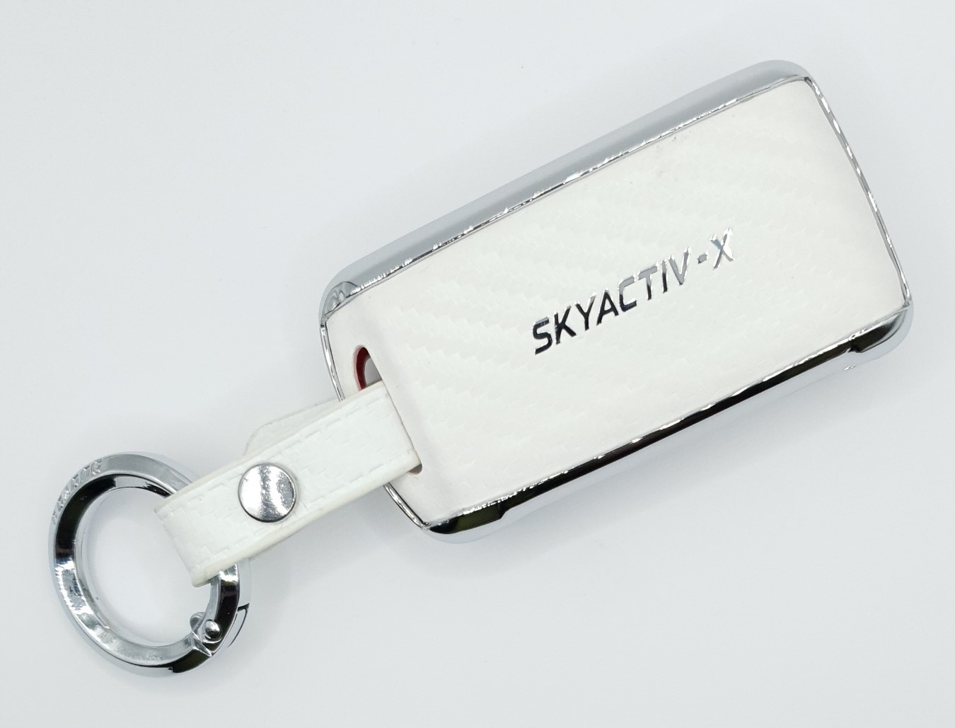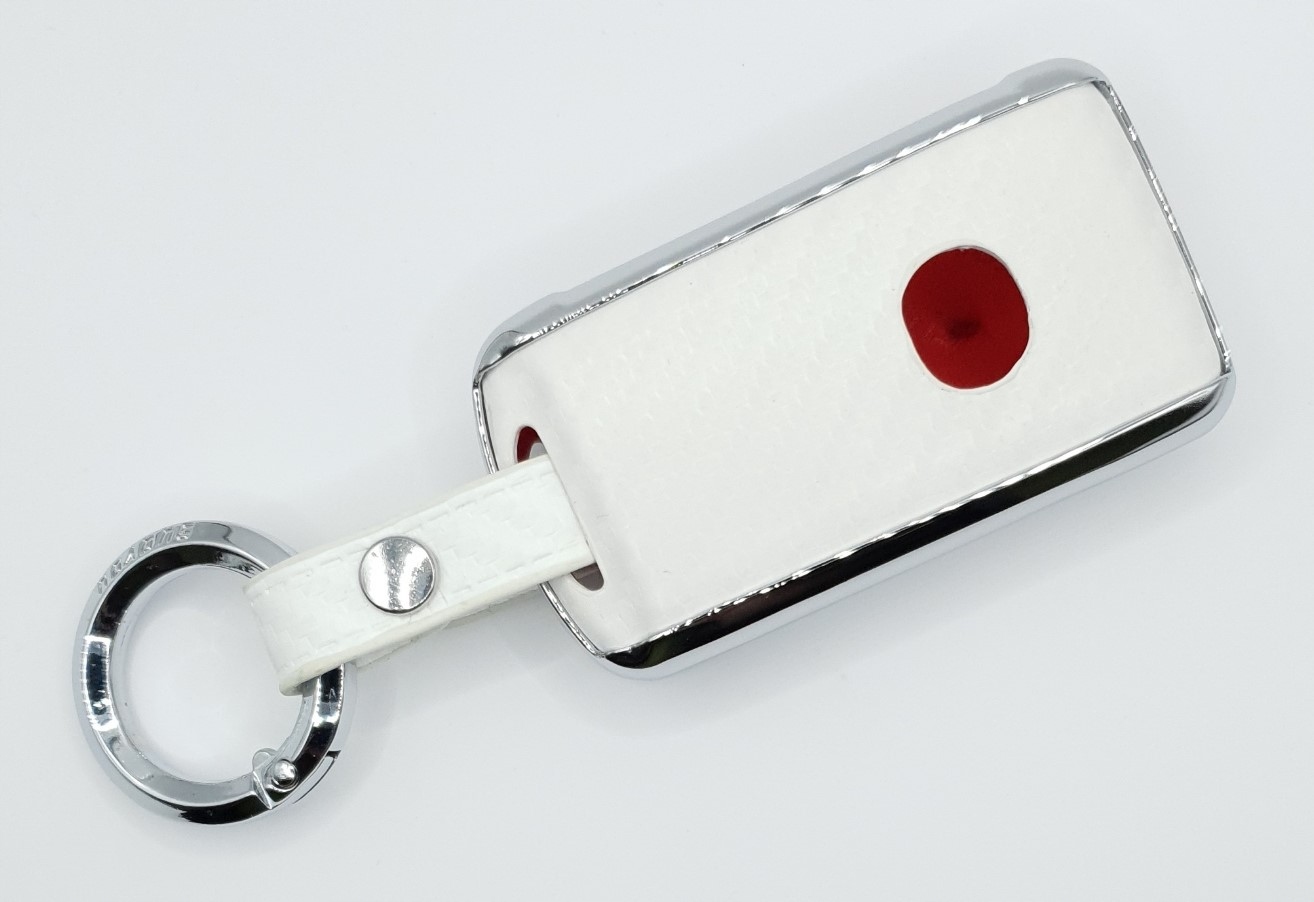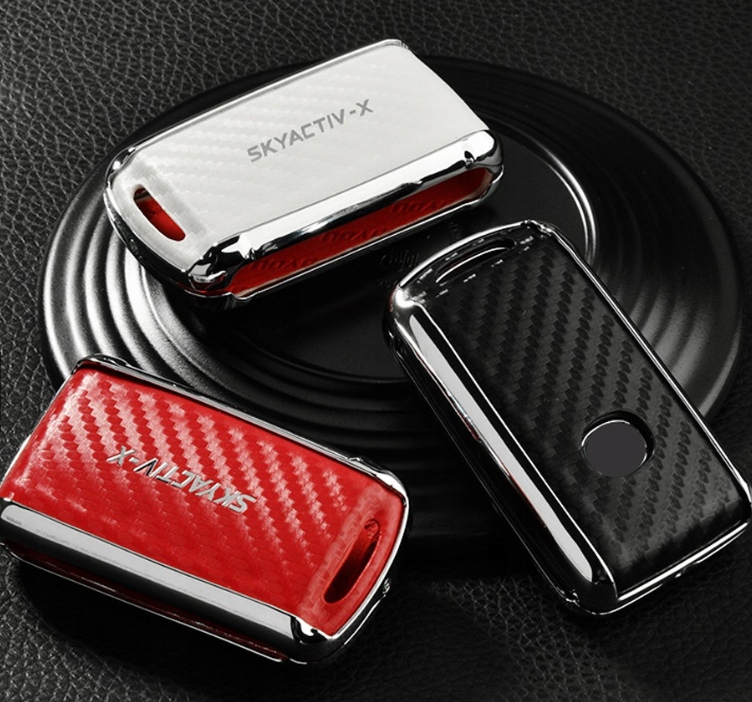 в асортименті новий елегантний високоякісний металевий хромований чохол з білими шкіряними вставками, що імітують вуглець, для версії ключа SMART для моделей MAZDA 2/3/4-кнопки з карабіном: