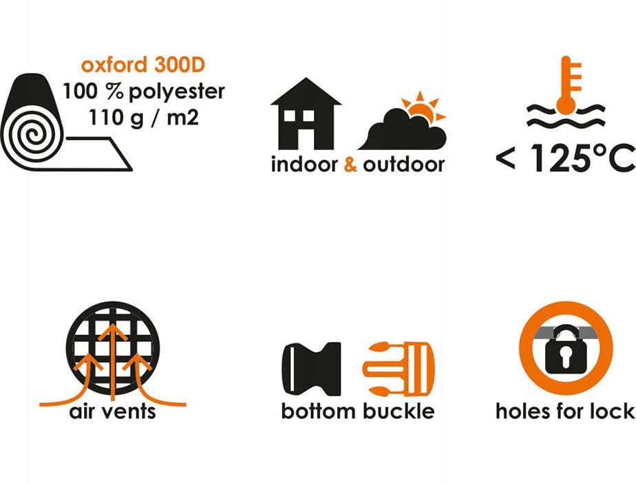 Водонепроникні чохли для мотоциклів марки eXtremestyle ® виготовлені з високоякісного матеріалу Oxford 300D, виготовленого з 100% поліестеру вагою 110 г / м2, що витримує температуру до 125°C.