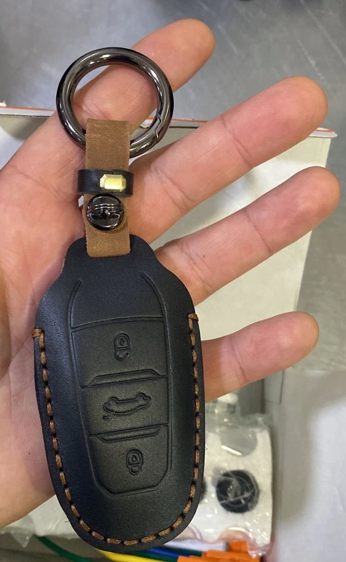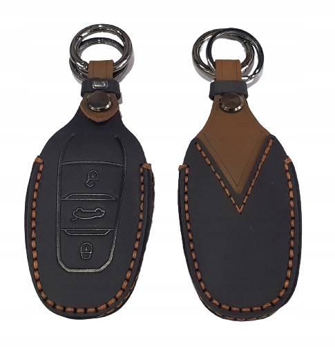 в асортименті новий чохол - Чохол ручної роботи з натуральної шкіри Crazy Horse чорного кольору з карабіном для ключа SMART Peugeot, Citroen (DS) та Opel (версія з багажником):