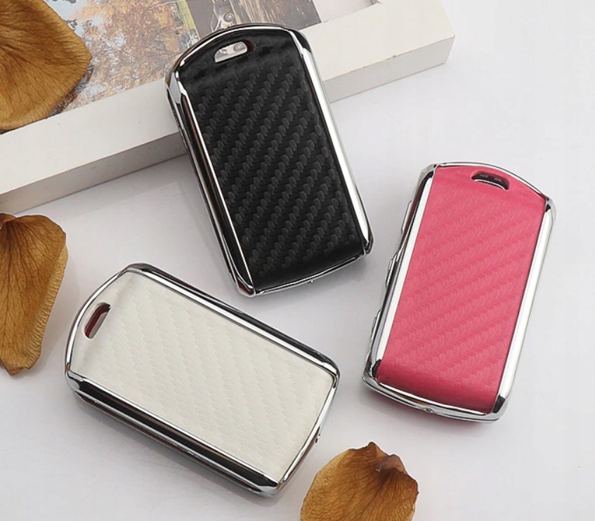 в асортименті чохол, красиво зроблений металевий хромований чохол з шкіряними аксесуарами (стиль рожевий карбон) для останніх моделей VOLVO: