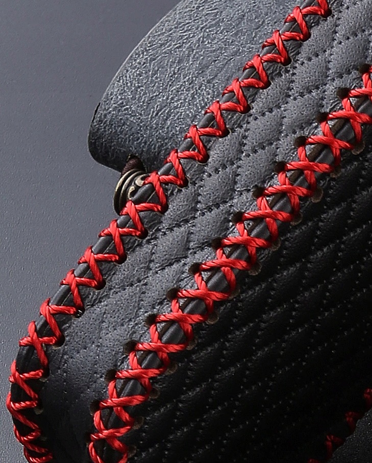 в асортименті новий чохол, Чохол ручної роботи з стьобаною шкіри з червоною строчкою разом з шкіряним ремінцем і карабіном для моделей MERCEDES версії ключа SMART з 2016 року: