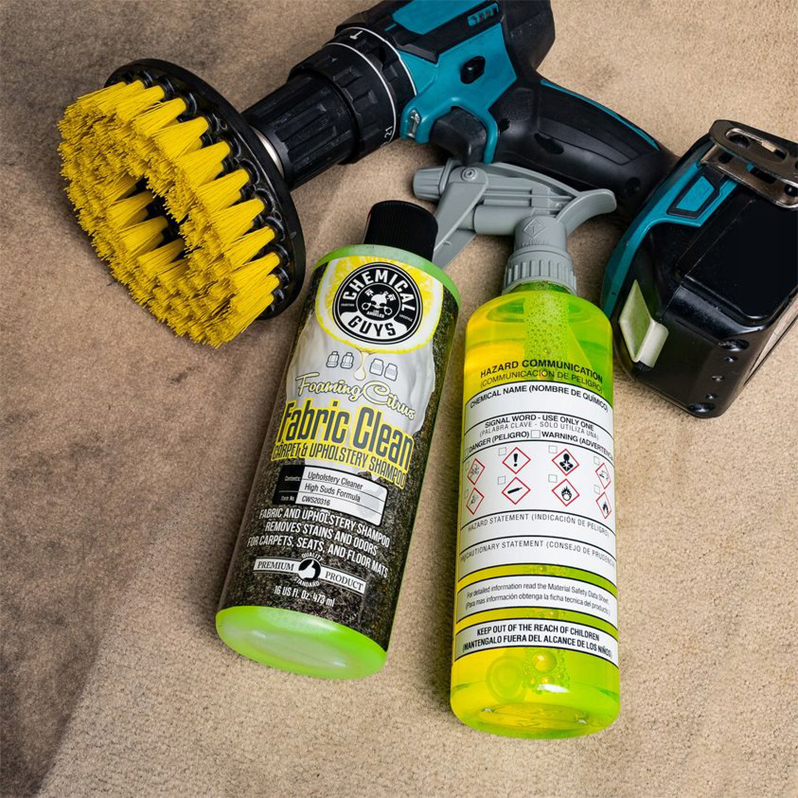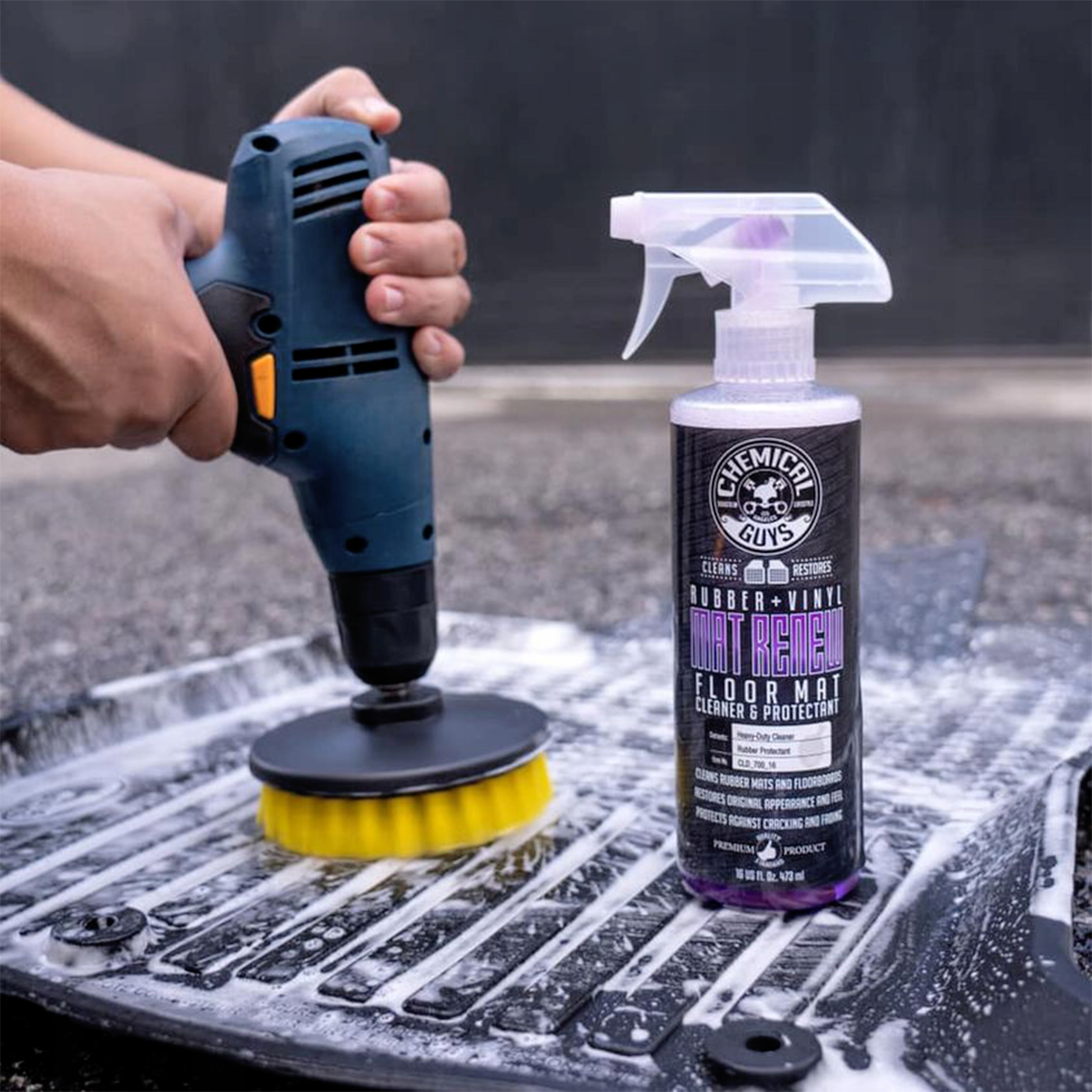 щітка Carpet Brush розроблена таким чином, щоб під час роботи вона вивільняла весь бруд з поверхні, що очищається і поглинала її з відцентровою силою вгору. Це дозволяють спеціальні волокна, які щільно вбудовані в диск і звужуються до нього. Завдяки цьому він відмінно видаляє навіть сильно осів бруд. Завдяки ручці, яка легко кріпиться до дрилі, ви можете легко очистити навіть сильно забруднену поверхню, наприклад, килимок біля педалей або забруднену оббивку.е>