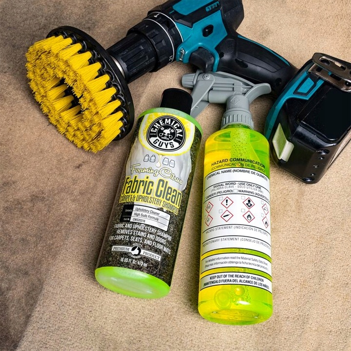 • 1 шт. CHEMICAL GUYS FORAMING CITRUS FABRIC CLEAN 473ML - це засіб для глибокого очищення оббивки автомобільних килимів, тканин або стелі. Розчиняє і видаляє бруд, запахи і плями завдяки сильно піниться і глибоко проникаючою формулою. Він має антибактеріальну дію і підходить для очищення всього інтер'єру. Має дуже приємний цитрусовий аромат.