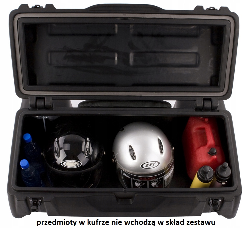 У комплект поставки входять: чотири ключа і монтажний комплект для надійного кріплення. Вантажна площа досить велика, щоб вмістити будь-які аксесуари, необхідні для водіння, роботи в полі, риболовлі, полювання або перевезення покупок. Чемодан через його габаритів і характерної форми "Рогала" призначений для задніх багажників. Крім того, він має зручну спинку з піноматеріалу для пасажира. Фотографії показують реальний зовнішній вигляд товару. Завдяки перевіреній якості, він забезпечує тривалу і безпроблемну експлуатацію.