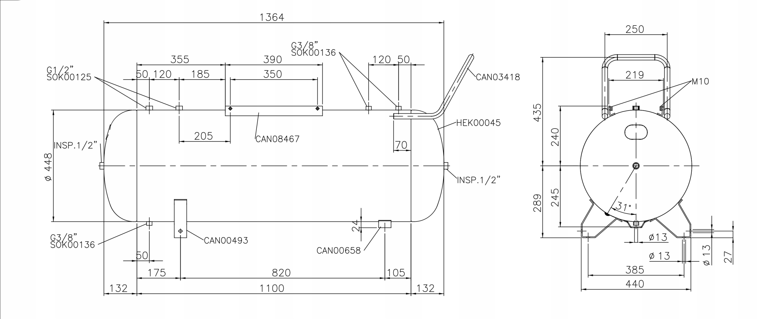 новий резервуар для компресора об'ємом 200 л.