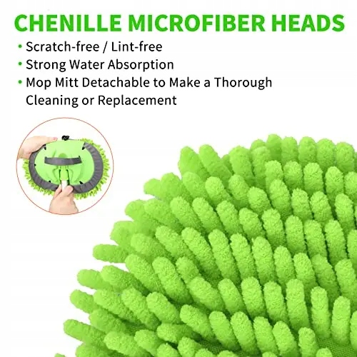 • ✅【голівка щітки з синелі без подряпин】: м'яка, не дряпається, не зношується, мікрофібра з синелі може легко очищати поверхню від бруду, бруду і зернистості автомобіля без подряпин на поверхні автомобіля. Набір швабри для миття автомобіля поставляється зі змінними чохлами з синелі з мікрофібри, які можна використовувати повторно і прати в машині. Його також можна використовувати для чищення вікон будинку або підлоги.е>