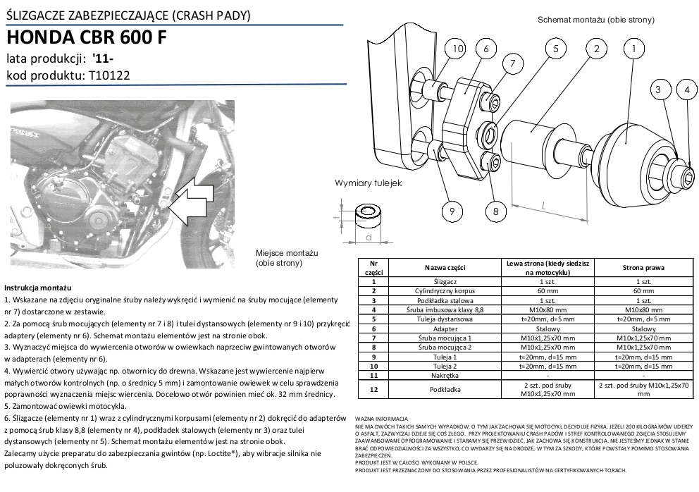 матеріал: інженерний пластик, який поглинає енергію удару і уповільнює ковзання мотоцикла. Елементи, виконані на машинах з числовим програмним управлінням.