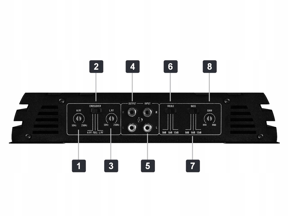 1. HIGH PASS-потенціометр налаштування робочих параметрів кросовера високих частот