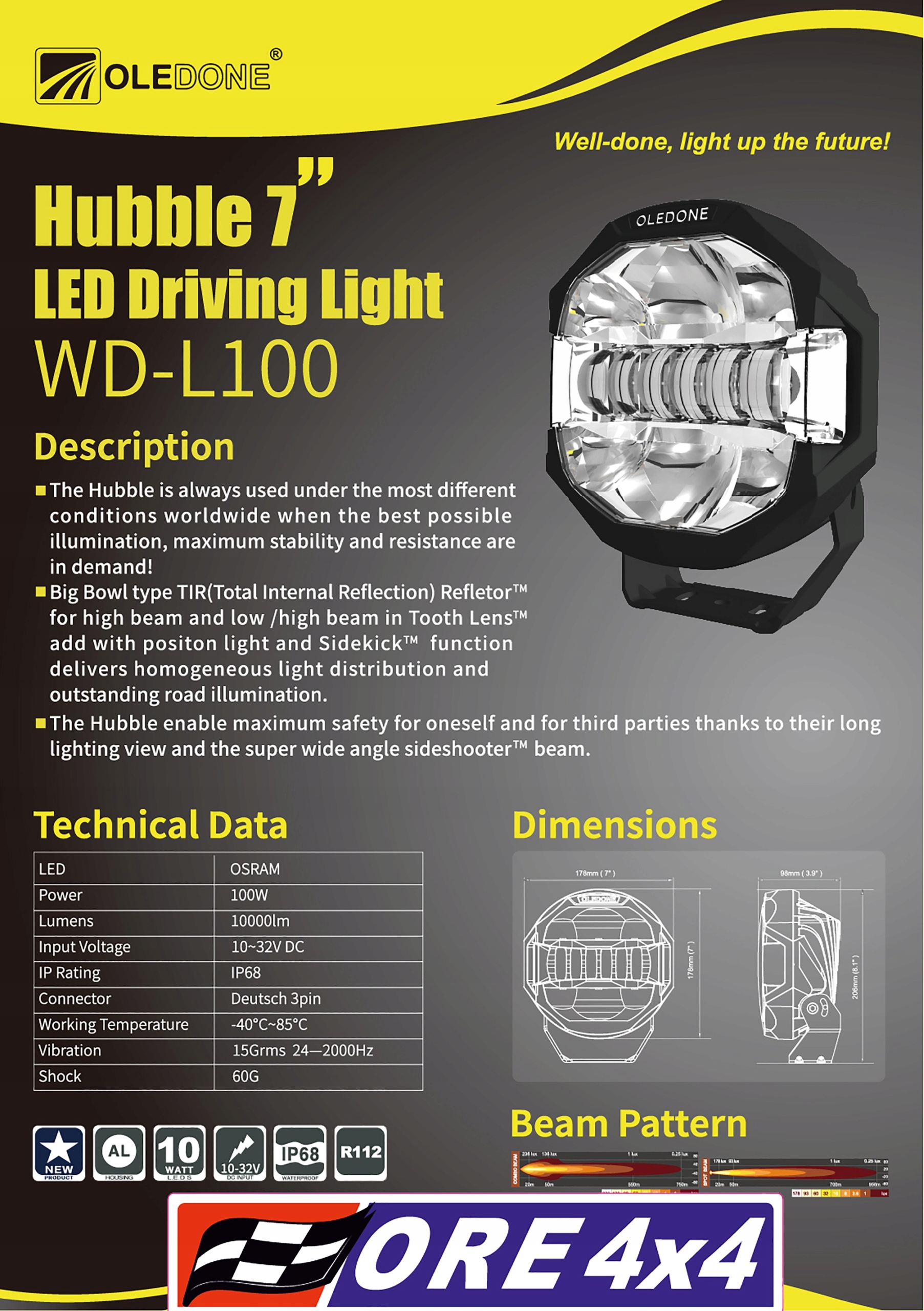 Hubble wd-L100 Combo-це модель, в якій використовуються світлодіоди Osram. Продукт призначений в основному для позашляховиків через відносно невеликих розмірів в порівнянні з пропонованими параметрами, що дозволяє встановлювати його саме там, де нам потрібно.е>