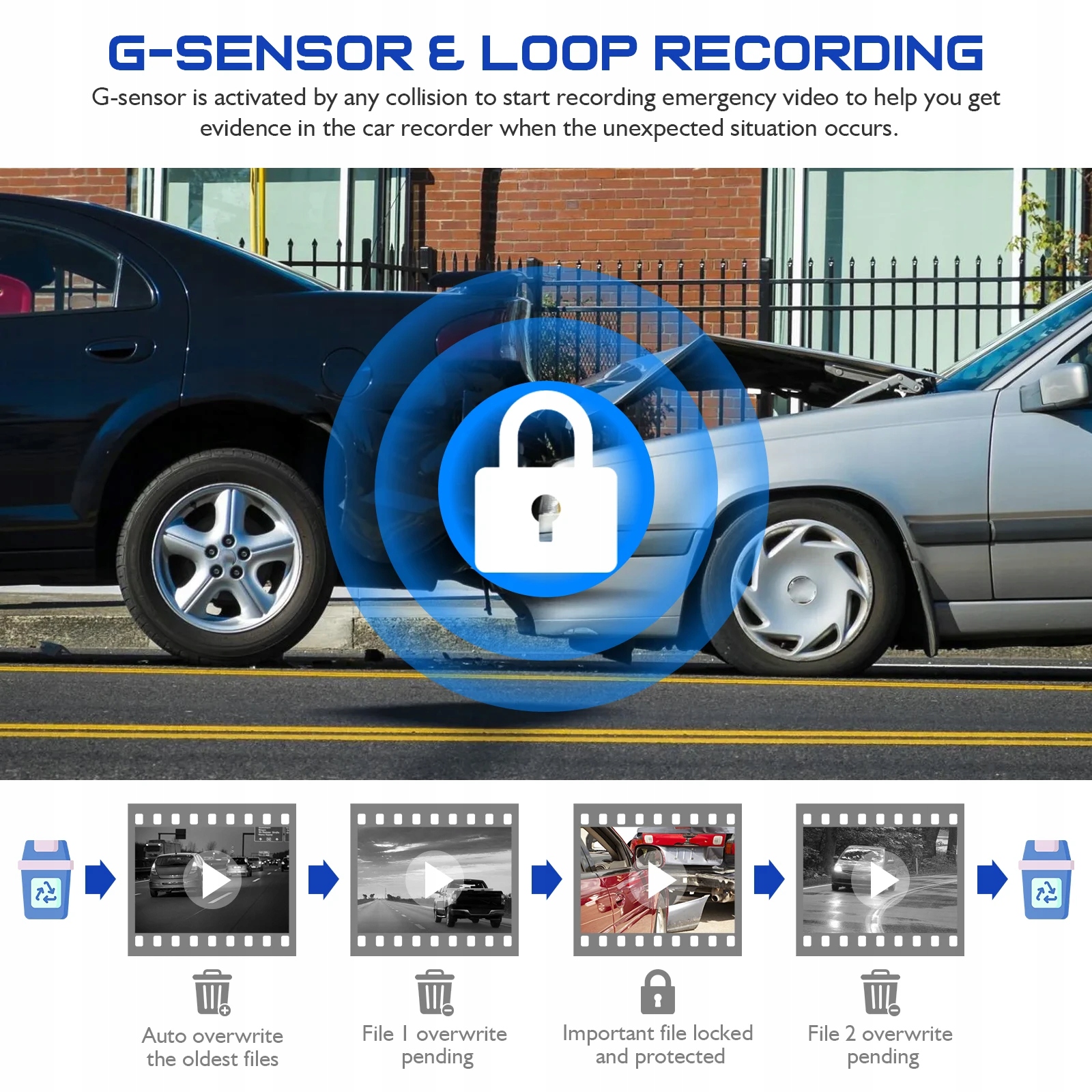 в Gsensors, which will be triggered by events such as bumps or sudden braking, the recording will not be overwritten when recording in a loop .е>